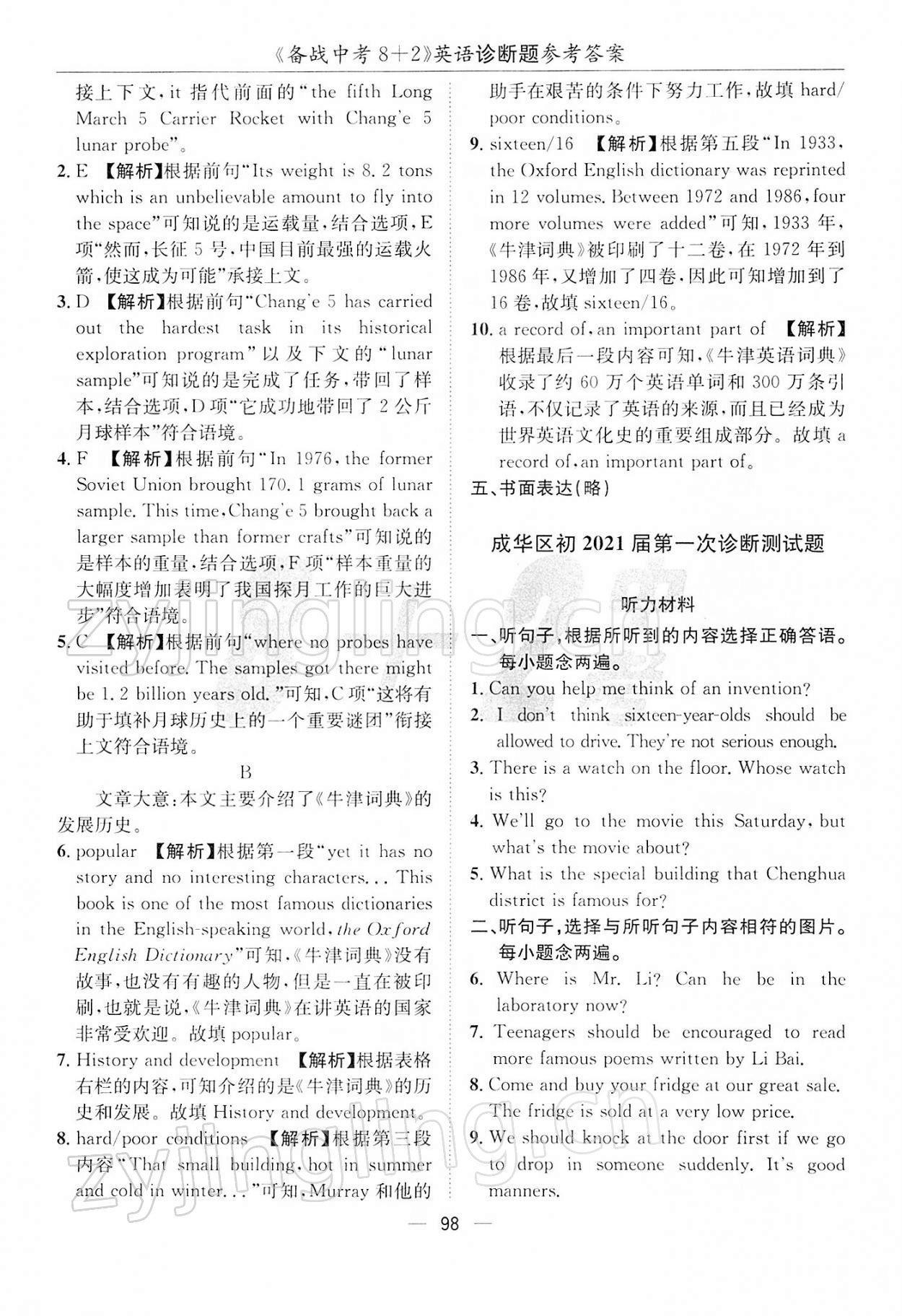 注:目前有些书本章节名称可能整理的还不是很完善,但都是按照顺序排列的,请同学们按照顺序仔细查找。练习册 2022年备战中考8加2英语 答案主要是用来给同学们做完题方便对答案用的,请勿直接抄袭。