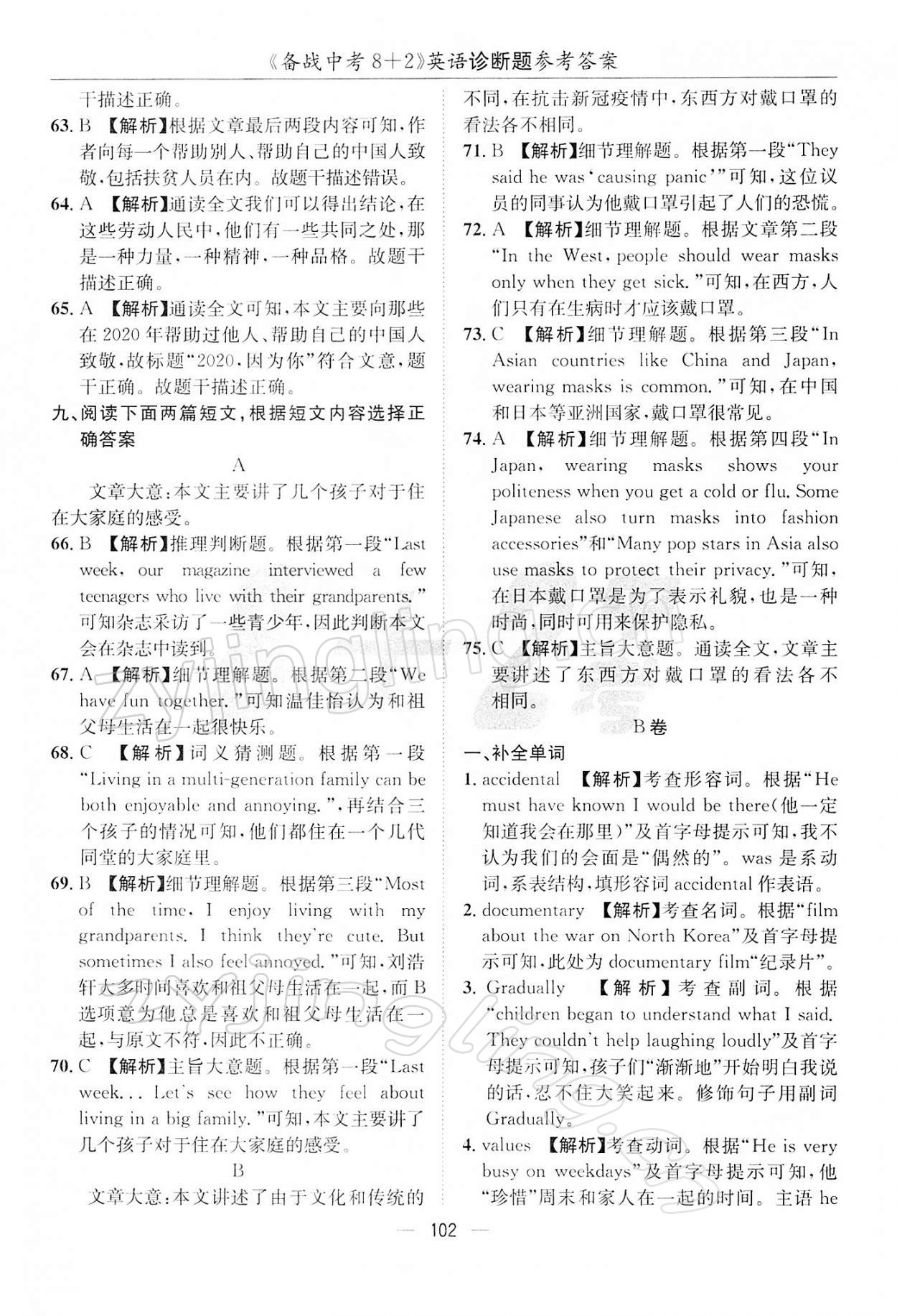 注:目前有些书本章节名称可能整理的还不是很完善,但都是按照顺序排列的,请同学们按照顺序仔细查找。练习册 2022年备战中考8加2英语 答案主要是用来给同学们做完题方便对答案用的,请勿直接抄袭。