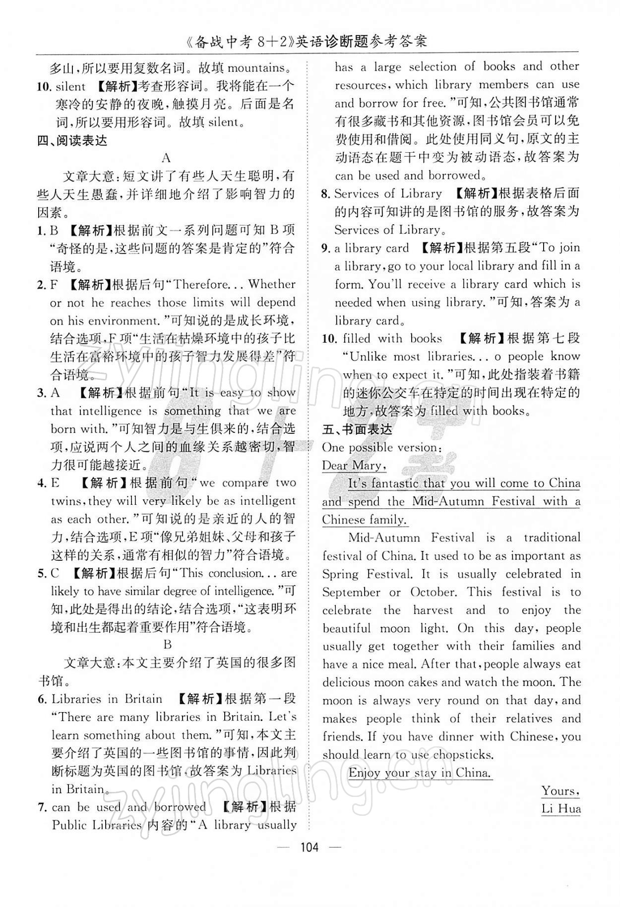 注:目前有些书本章节名称可能整理的还不是很完善,但都是按照顺序排列的,请同学们按照顺序仔细查找。练习册 2022年备战中考8加2英语 答案主要是用来给同学们做完题方便对答案用的,请勿直接抄袭。