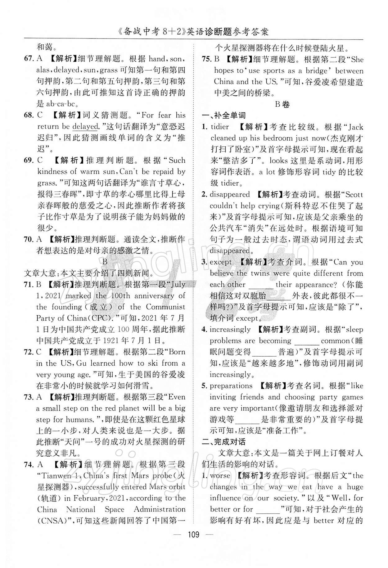 注:目前有些书本章节名称可能整理的还不是很完善,但都是按照顺序排列的,请同学们按照顺序仔细查找。练习册 2022年备战中考8加2英语 答案主要是用来给同学们做完题方便对答案用的,请勿直接抄袭。