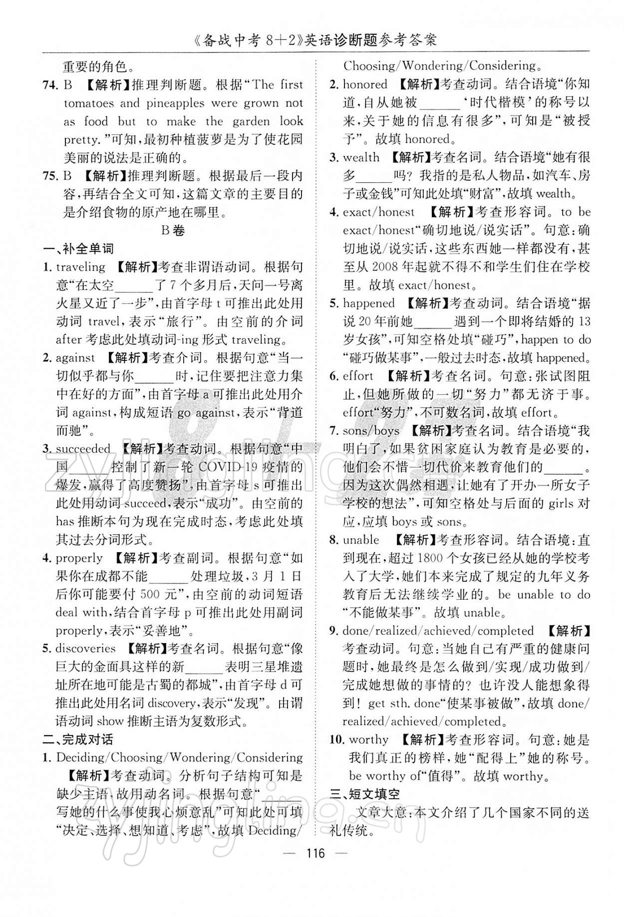 注:目前有些书本章节名称可能整理的还不是很完善,但都是按照顺序排列的,请同学们按照顺序仔细查找。练习册 2022年备战中考8加2英语 答案主要是用来给同学们做完题方便对答案用的,请勿直接抄袭。