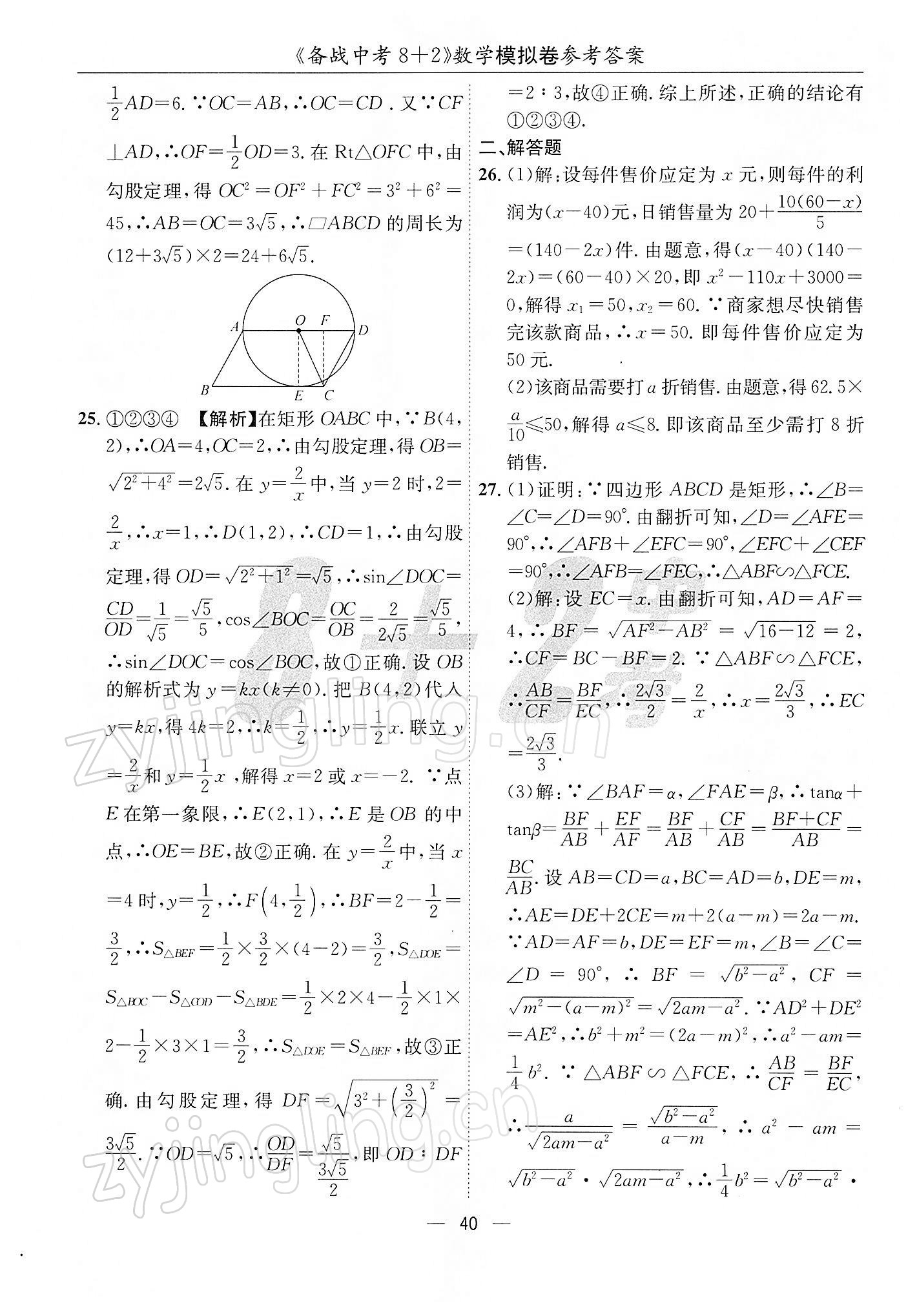 2022年备战中考8加2数学中考成都专版