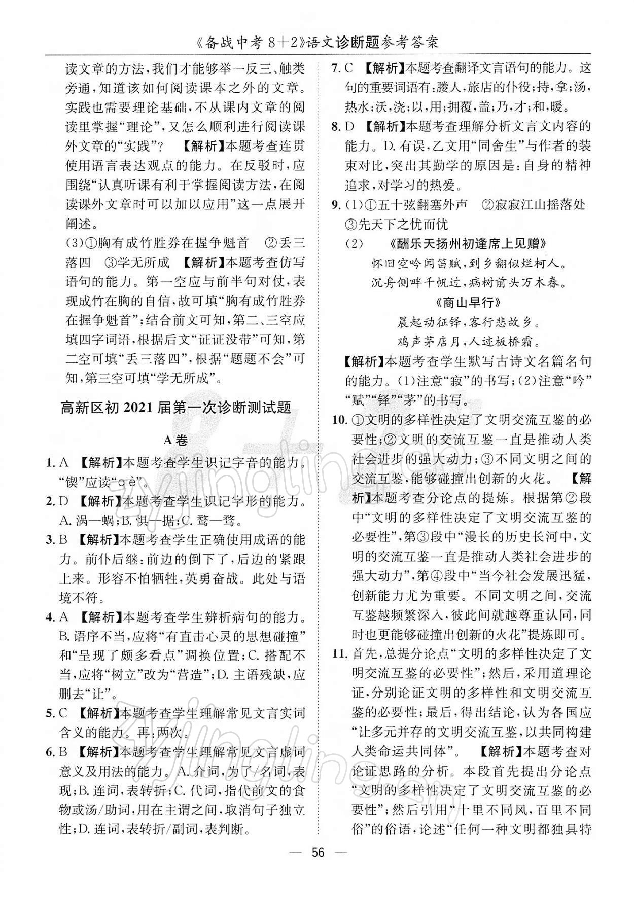注:目前有些书本章节名称可能整理的还不是很完善,但都是按照顺序排列的,请同学们按照顺序仔细查找。练习册 2022年备战中考8加2九年级语文 答案主要是用来给同学们做完题方便对答案用的,请勿直接抄袭。
