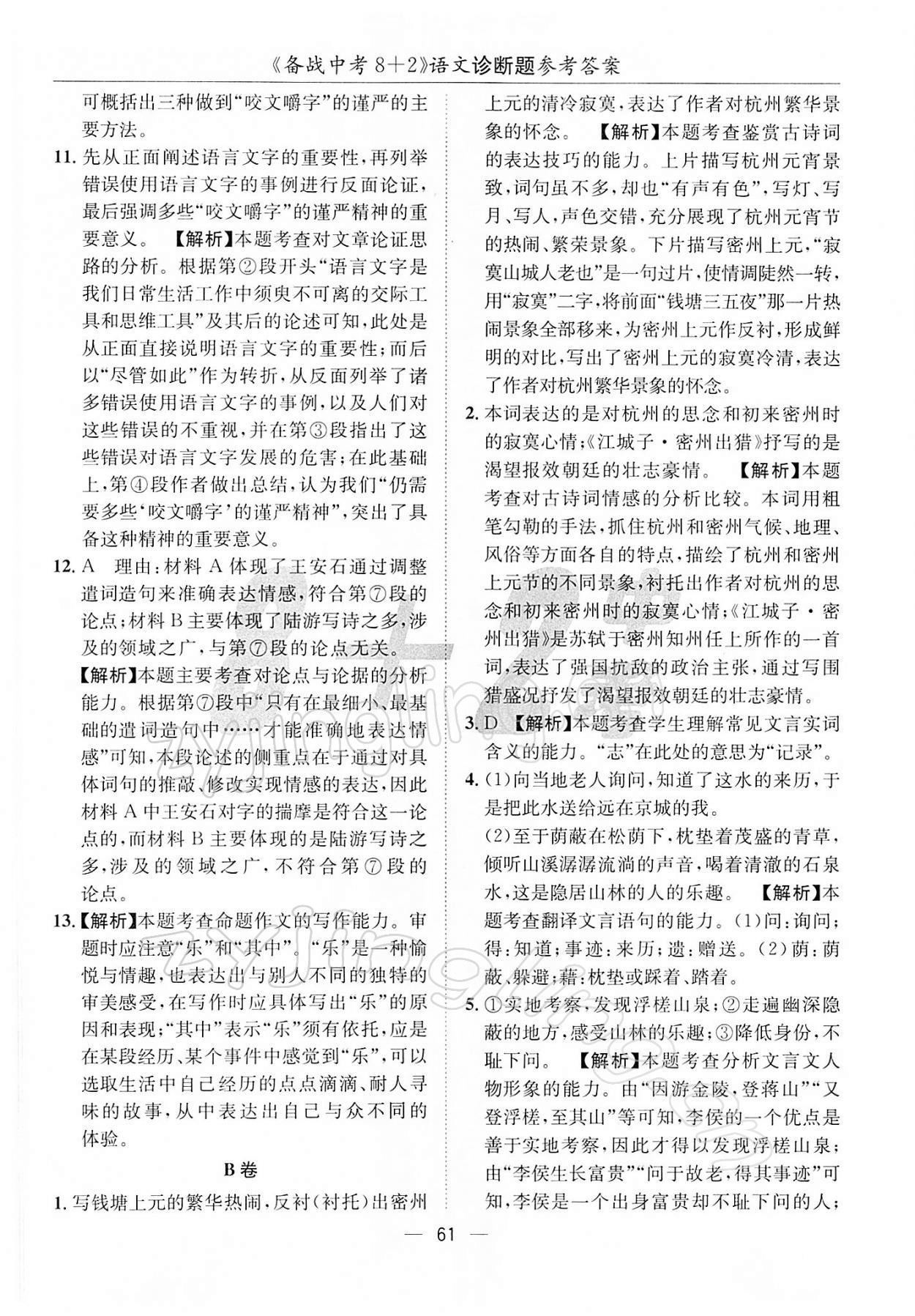 注:目前有些书本章节名称可能整理的还不是很完善,但都是按照顺序排列的,请同学们按照顺序仔细查找。练习册 2022年备战中考8加2九年级语文 答案主要是用来给同学们做完题方便对答案用的,请勿直接抄袭。