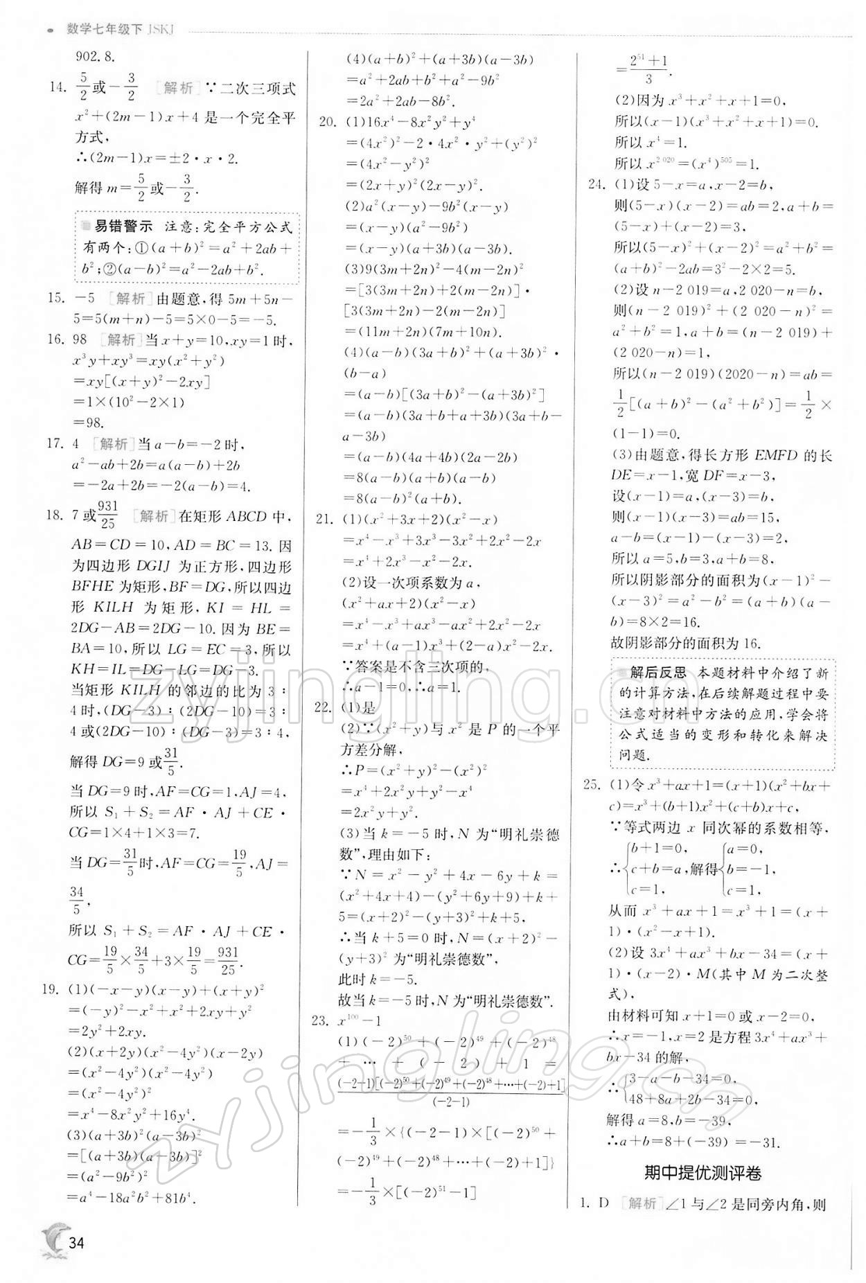 注:目前有些书本章节名称可能整理的还不是很完善,但都是按照顺序排列的,请同学们按照顺序仔细查找。练习册 2022年实验班提优训练七年级数学下册苏科版江苏专版 答案主要是用来给同学们做完题方便对答案用的,请勿直接抄袭。