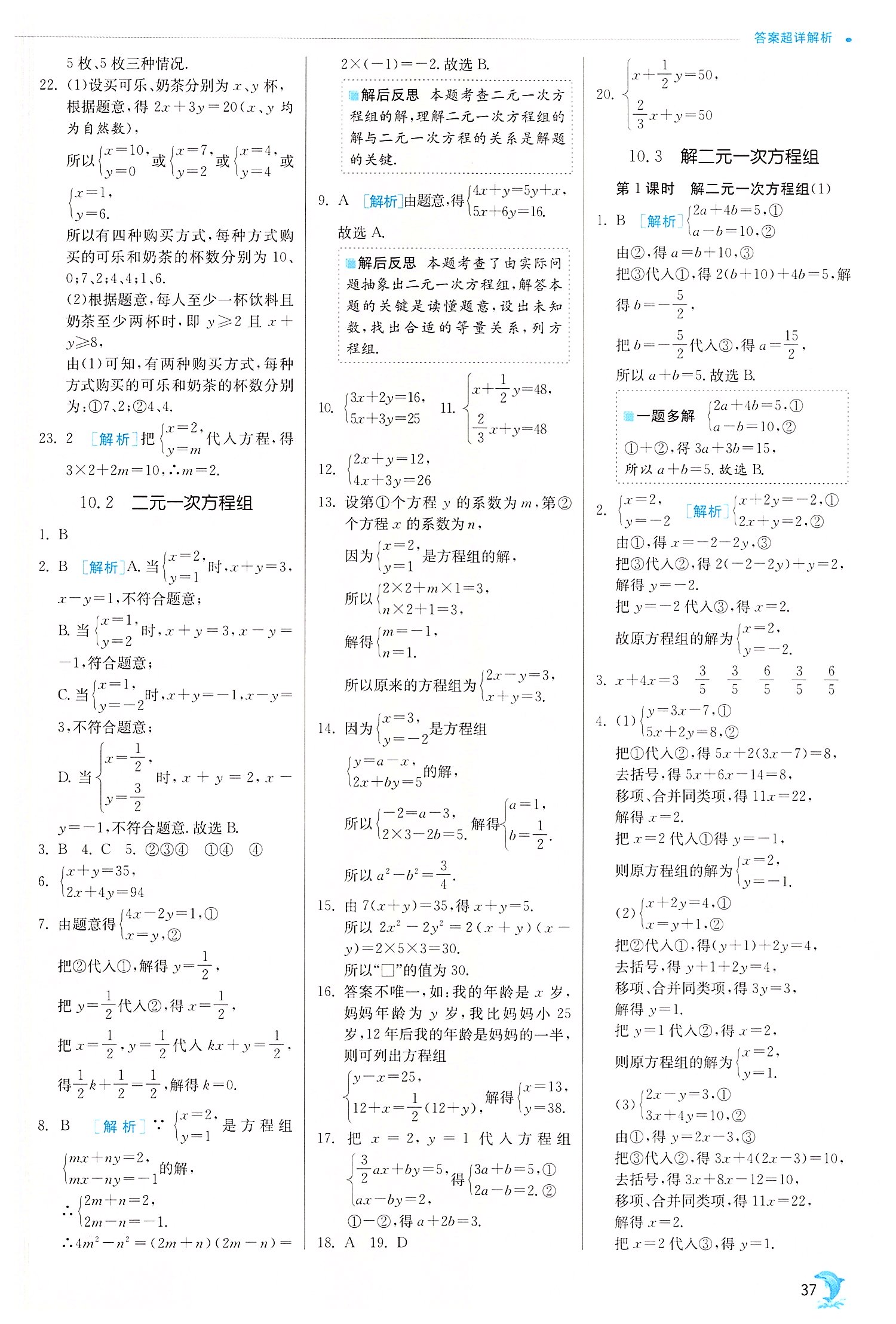 注:目前有些书本章节名称可能整理的还不是很完善,但都是按照顺序排列的,请同学们按照顺序仔细查找。练习册 2022年实验班提优训练七年级数学下册苏科版江苏专版 答案主要是用来给同学们做完题方便对答案用的,请勿直接抄袭。