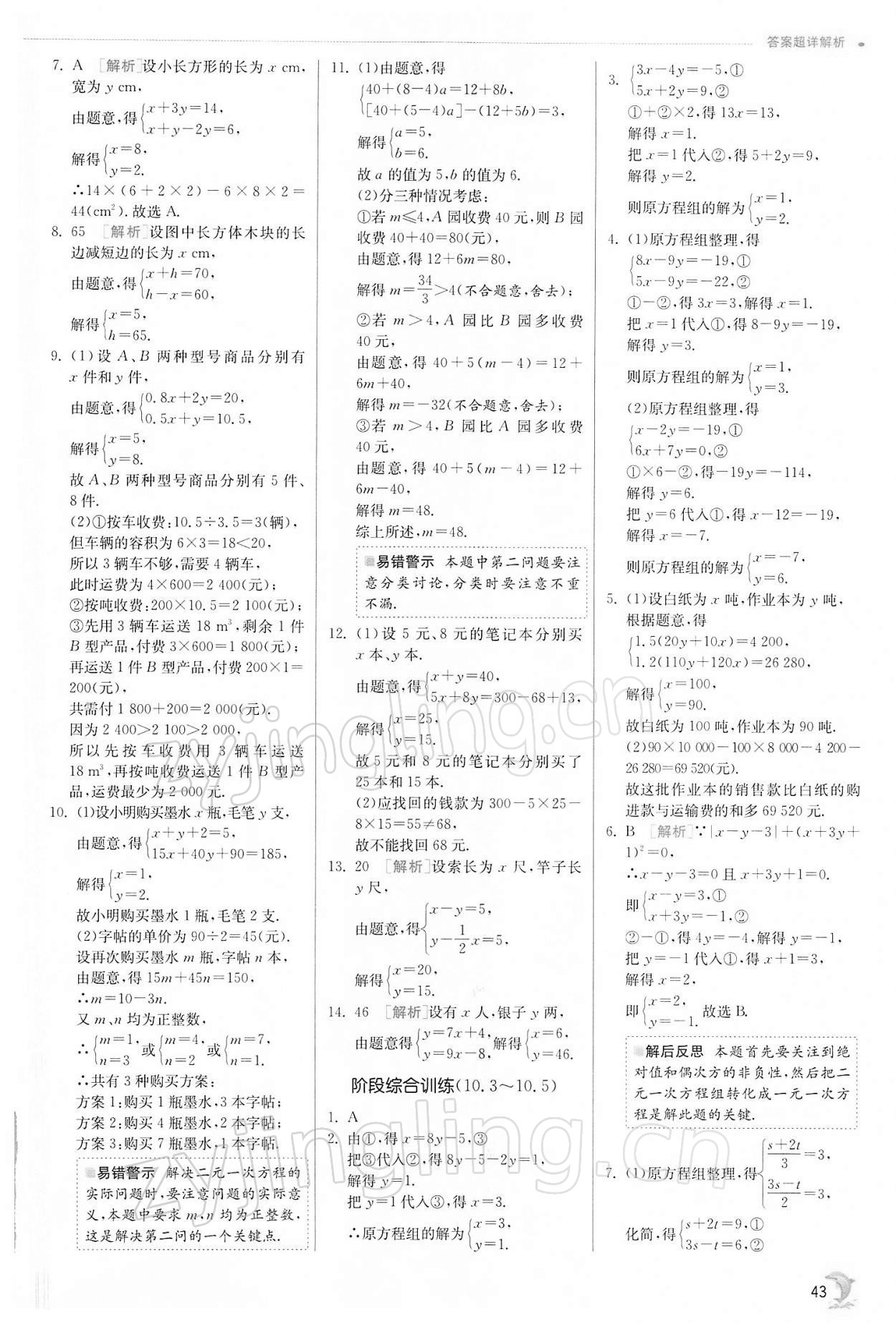 注:目前有些书本章节名称可能整理的还不是很完善,但都是按照顺序排列的,请同学们按照顺序仔细查找。练习册 2022年实验班提优训练七年级数学下册苏科版江苏专版 答案主要是用来给同学们做完题方便对答案用的,请勿直接抄袭。