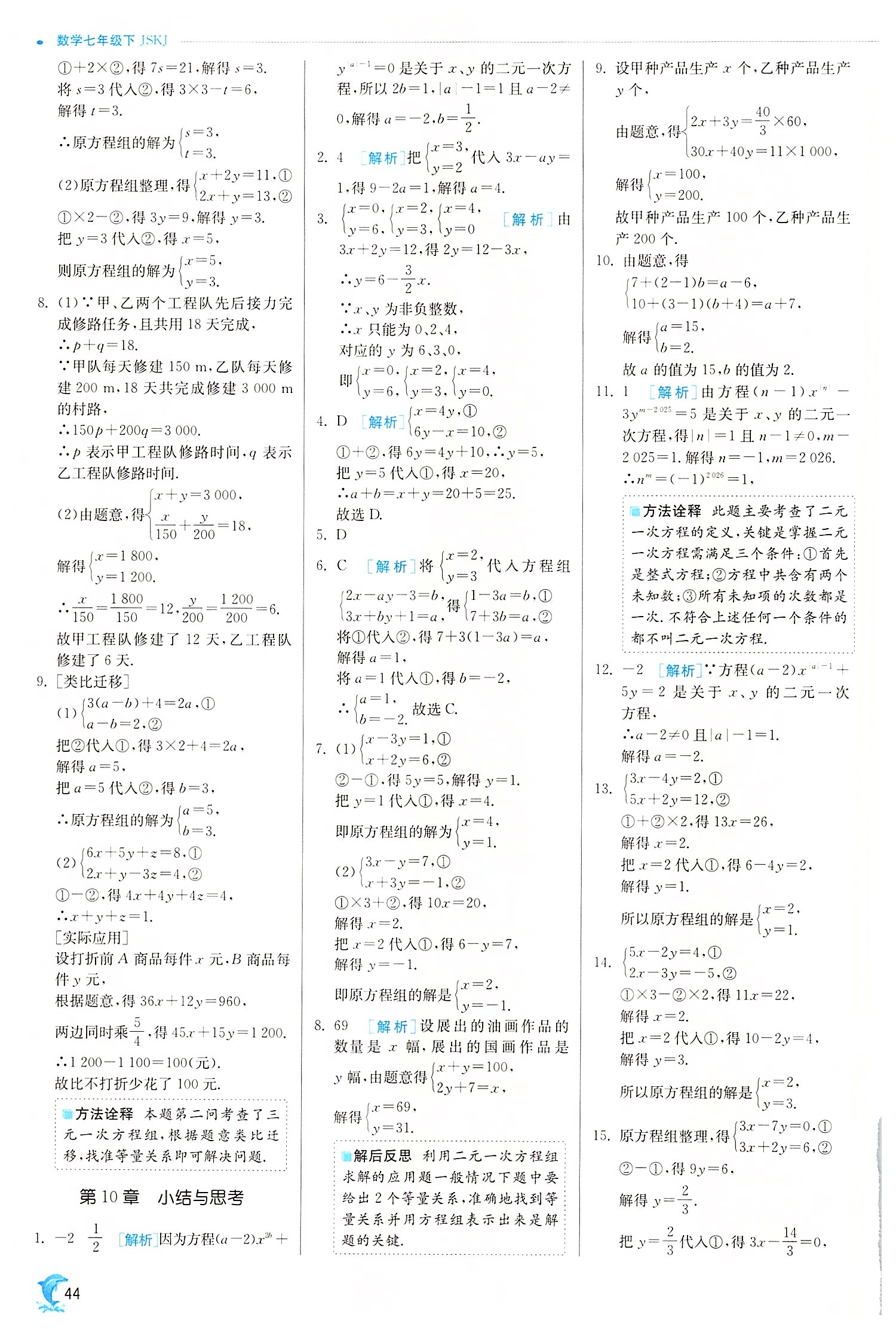 注:目前有些书本章节名称可能整理的还不是很完善,但都是按照顺序排列的,请同学们按照顺序仔细查找。练习册 2022年实验班提优训练七年级数学下册苏科版江苏专版 答案主要是用来给同学们做完题方便对答案用的,请勿直接抄袭。