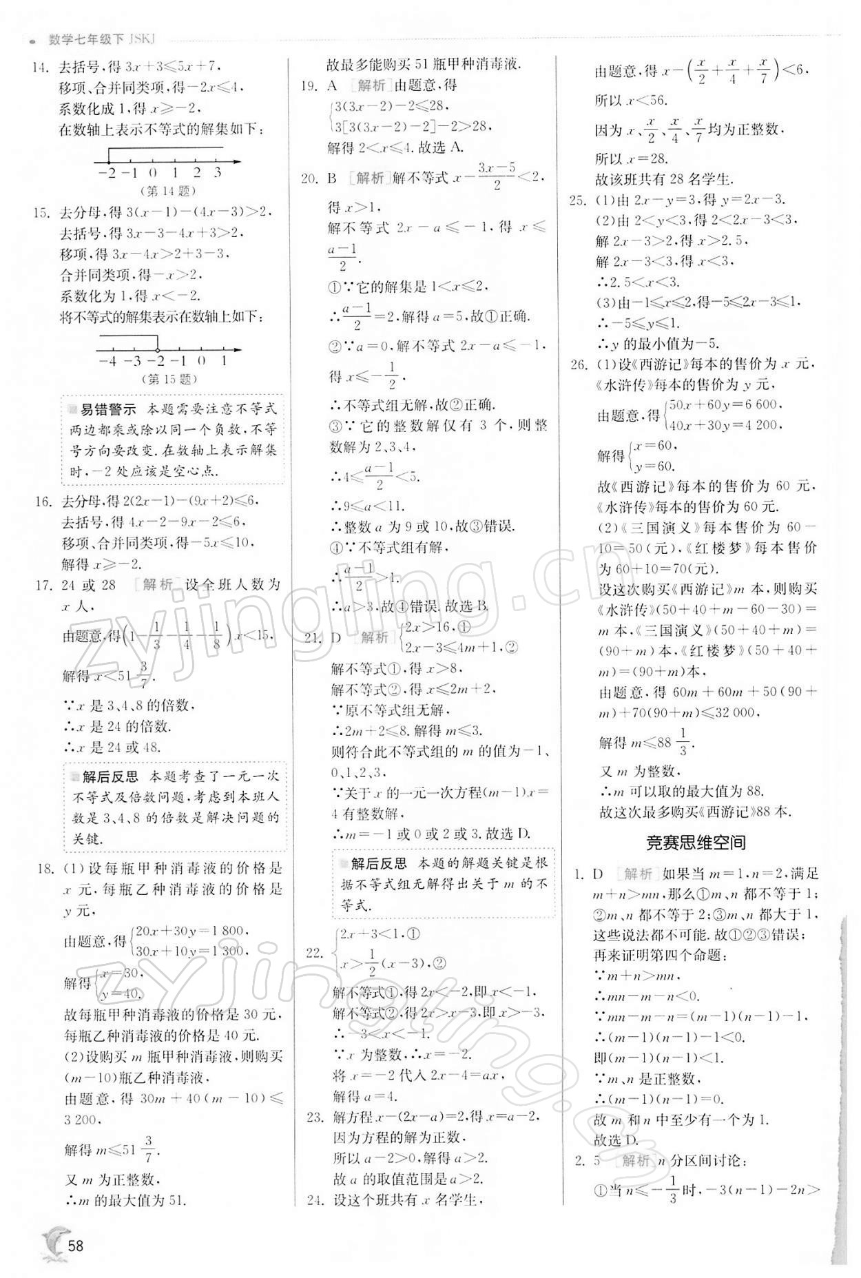 注:目前有些书本章节名称可能整理的还不是很完善,但都是按照顺序排列的,请同学们按照顺序仔细查找。练习册 2022年实验班提优训练七年级数学下册苏科版江苏专版 答案主要是用来给同学们做完题方便对答案用的,请勿直接抄袭。