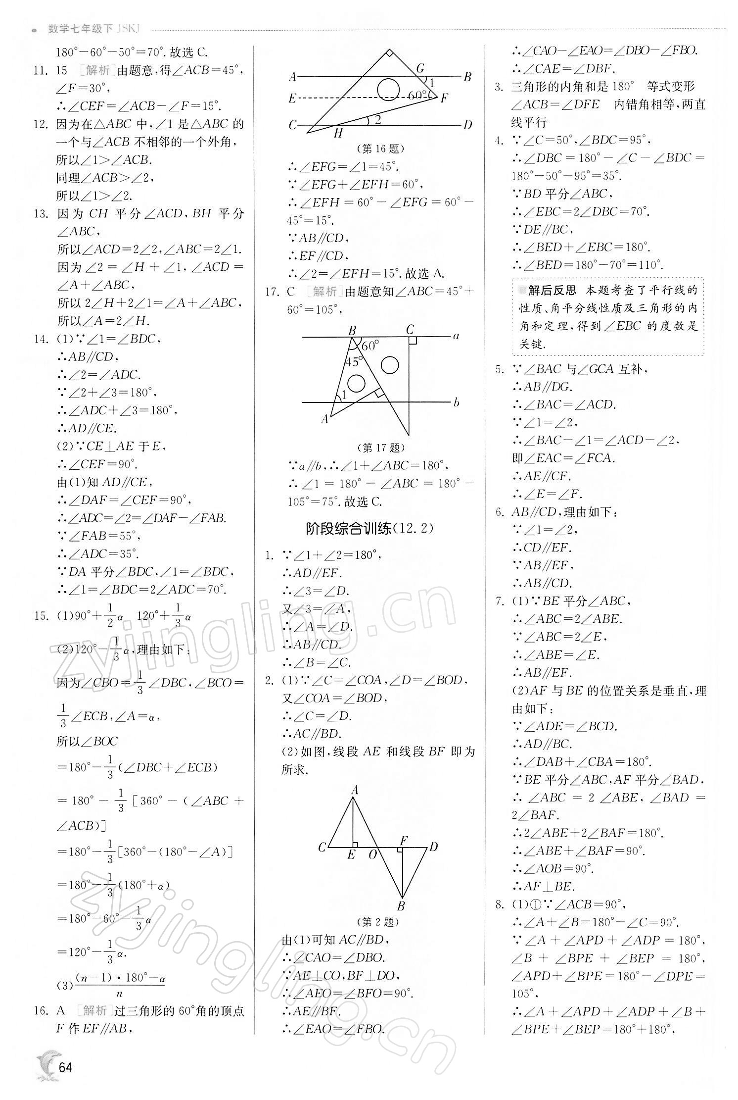 注:目前有些书本章节名称可能整理的还不是很完善,但都是按照顺序排列的,请同学们按照顺序仔细查找。练习册 2022年实验班提优训练七年级数学下册苏科版江苏专版 答案主要是用来给同学们做完题方便对答案用的,请勿直接抄袭。