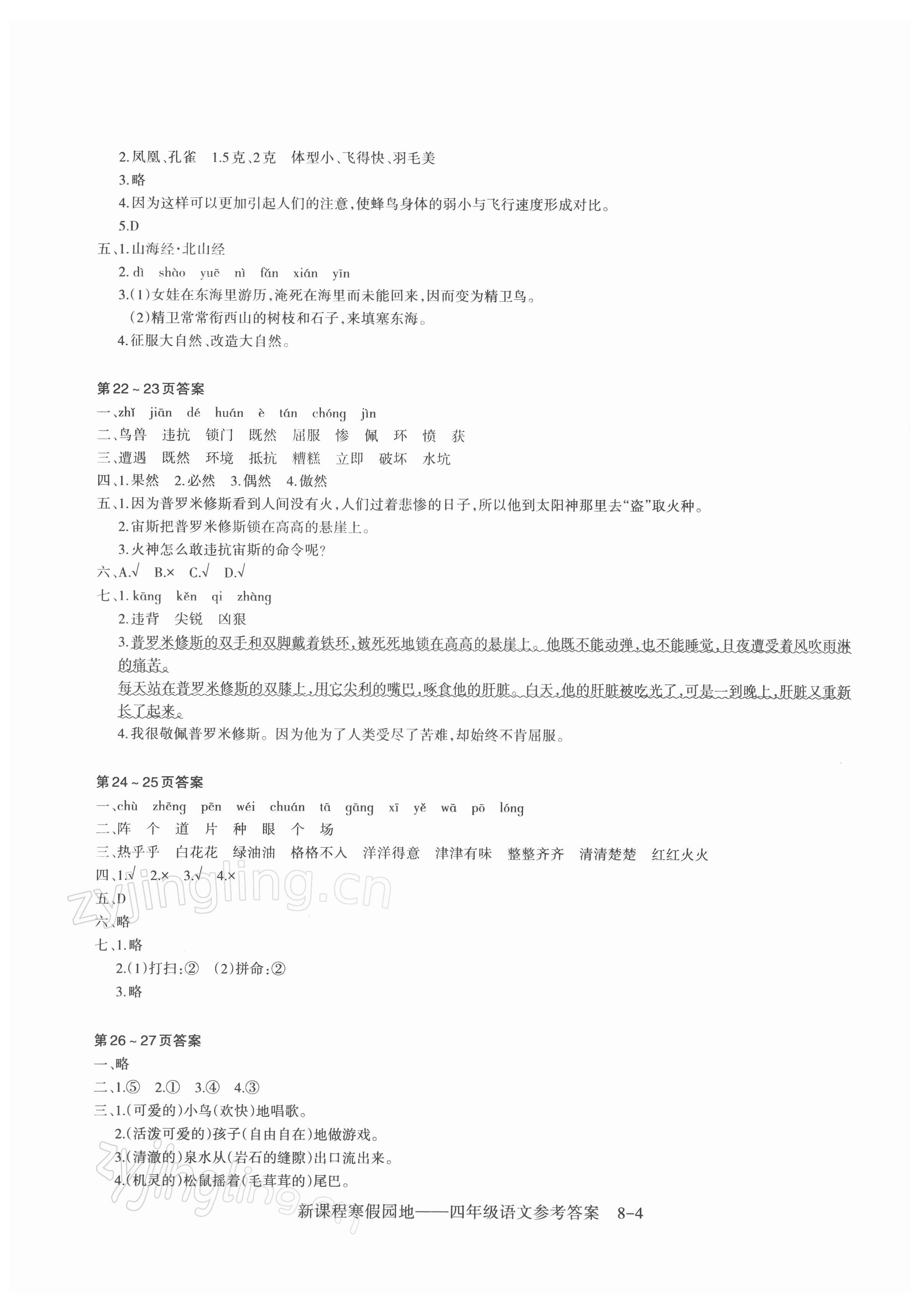 注:目前有些书本章节名称可能整理的还不是很完善,但都是按照顺序排列的,请同学们按照顺序仔细查找。练习册 2022年新课程寒假园地四年级语文人教版 答案主要是用来给同学们做完题方便对答案用的,请勿直接抄袭。