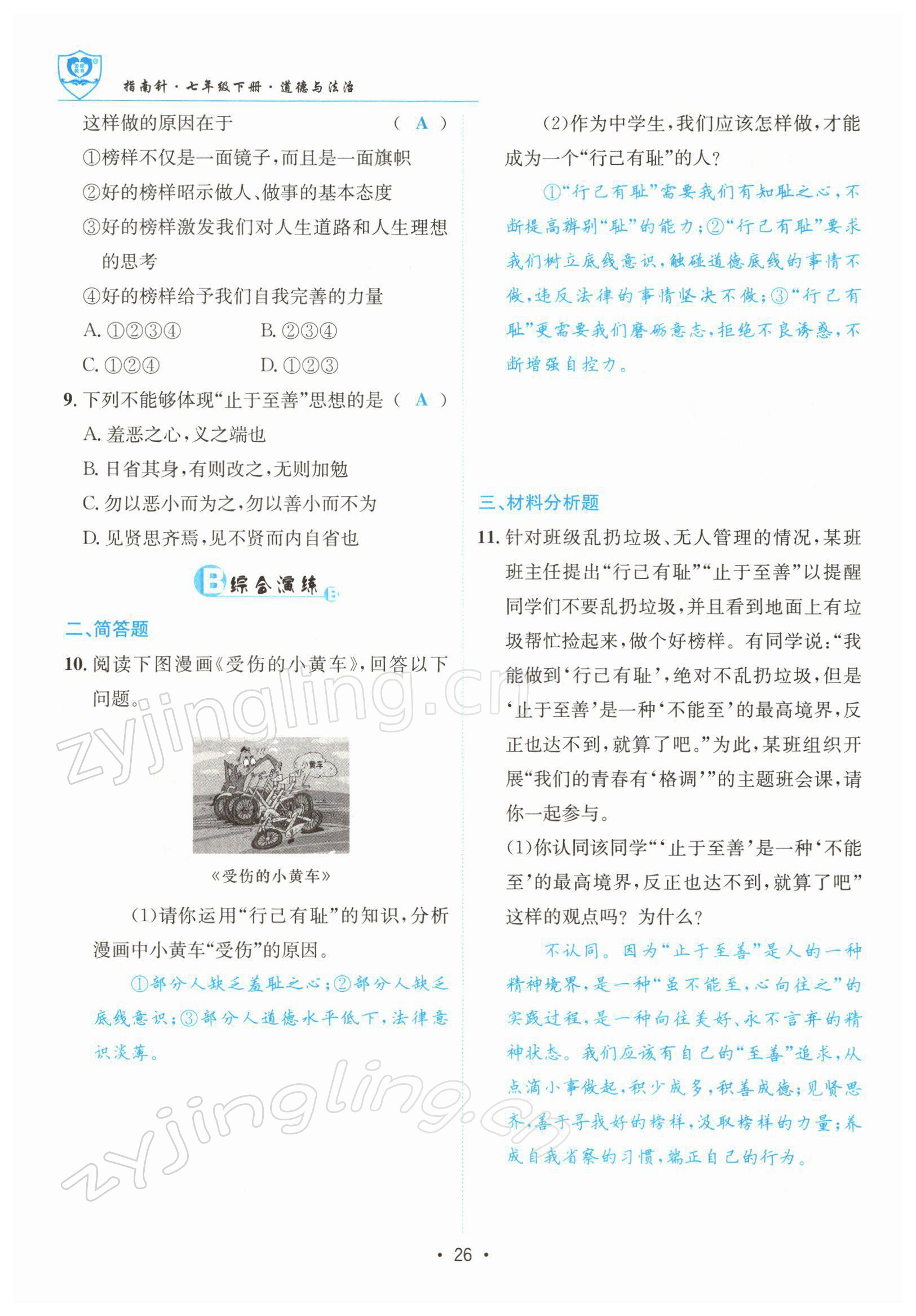 注:目前有些书本章节名称可能整理的还不是很完善,但都是按照顺序排列的,请同学们按照顺序仔细查找。练习册 2022年指南针导学探究七年级道德与法治下册人教版 答案主要是用来给同学们做完题方便对答案用的,请勿直接抄袭。