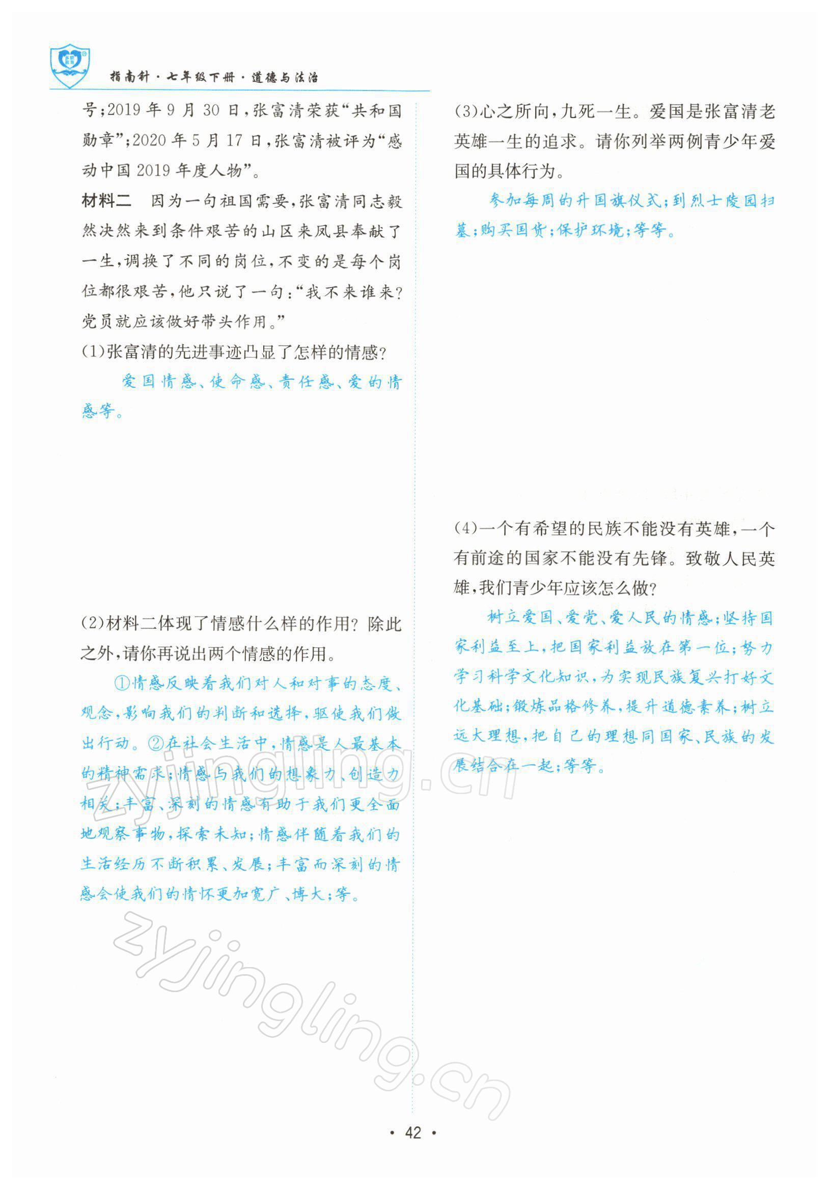 注:目前有些书本章节名称可能整理的还不是很完善,但都是按照顺序排列的,请同学们按照顺序仔细查找。练习册 2022年指南针导学探究七年级道德与法治下册人教版 答案主要是用来给同学们做完题方便对答案用的,请勿直接抄袭。