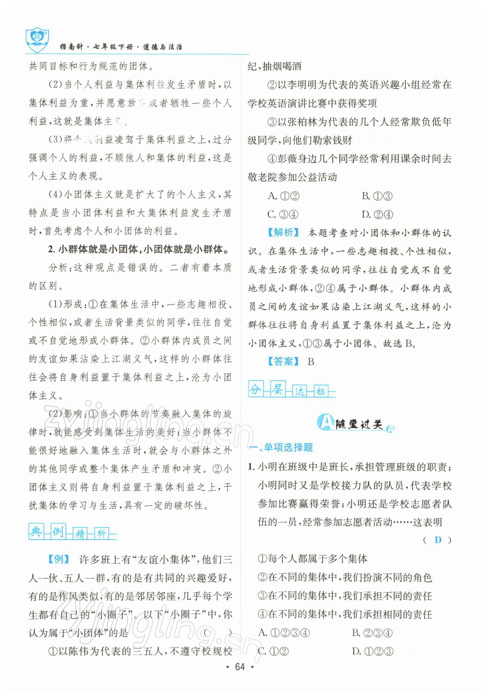 注:目前有些书本章节名称可能整理的还不是很完善,但都是按照顺序排列的,请同学们按照顺序仔细查找。练习册 2022年指南针导学探究七年级道德与法治下册人教版 答案主要是用来给同学们做完题方便对答案用的,请勿直接抄袭。
