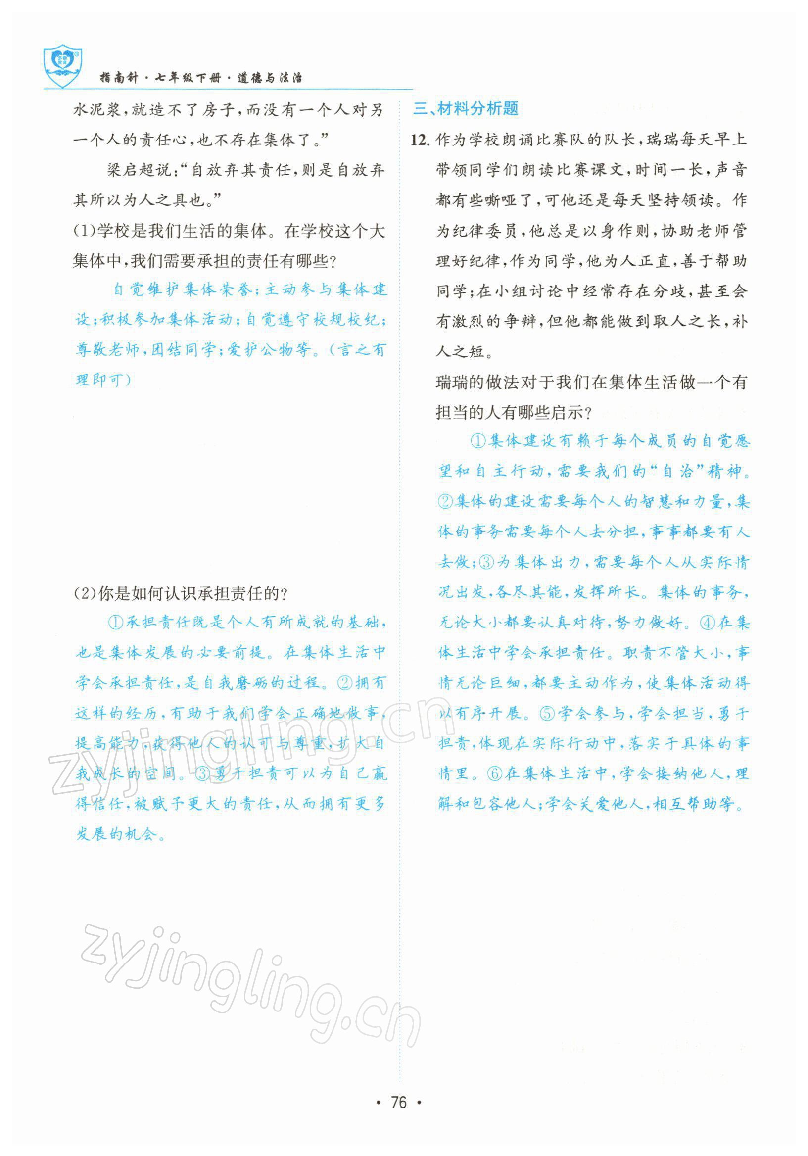 注:目前有些书本章节名称可能整理的还不是很完善,但都是按照顺序排列的,请同学们按照顺序仔细查找。练习册 2022年指南针导学探究七年级道德与法治下册人教版 答案主要是用来给同学们做完题方便对答案用的,请勿直接抄袭。