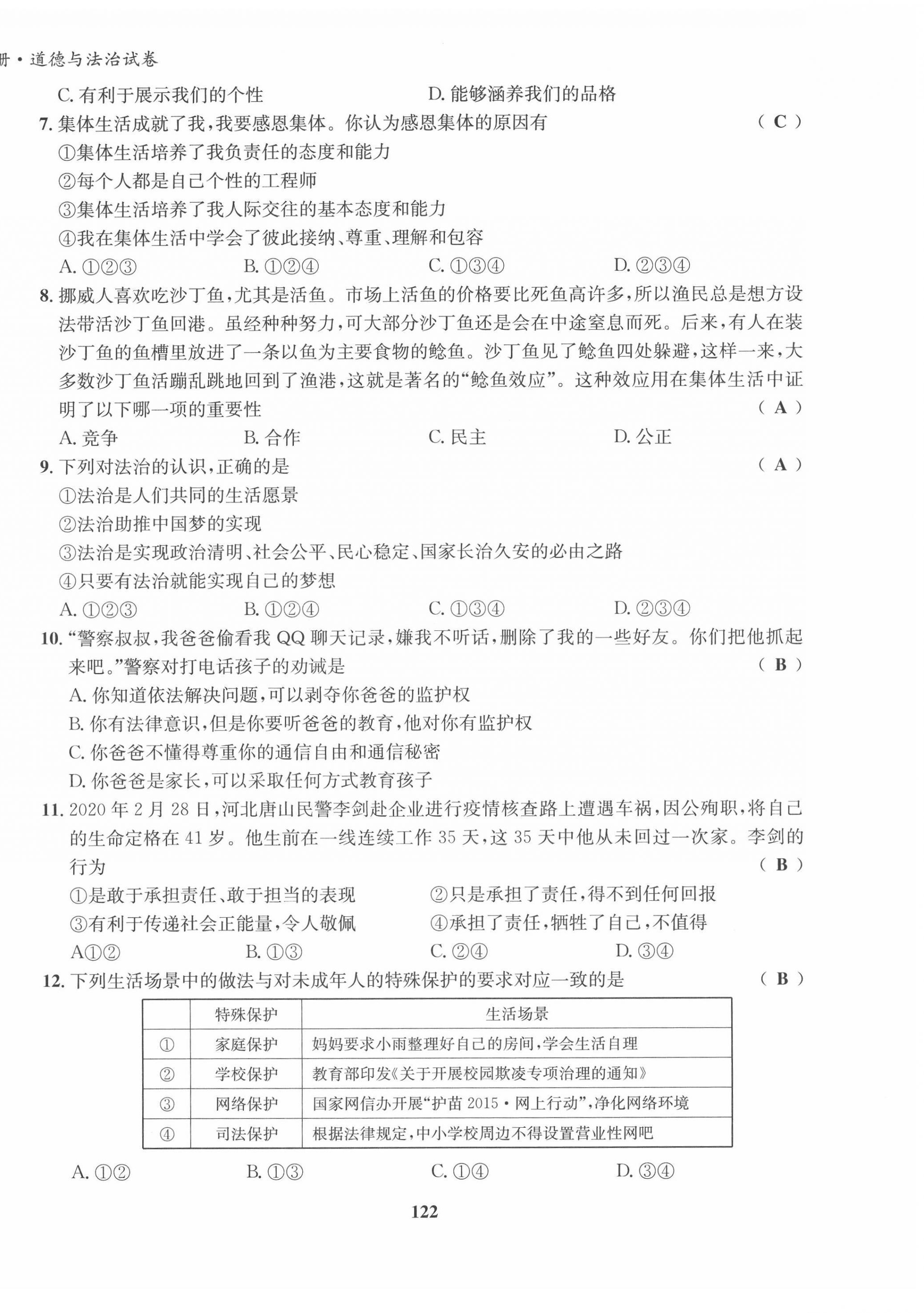 注:目前有些书本章节名称可能整理的还不是很完善,但都是按照顺序排列的,请同学们按照顺序仔细查找。练习册 2022年指南针导学探究七年级道德与法治下册人教版 答案主要是用来给同学们做完题方便对答案用的,请勿直接抄袭。