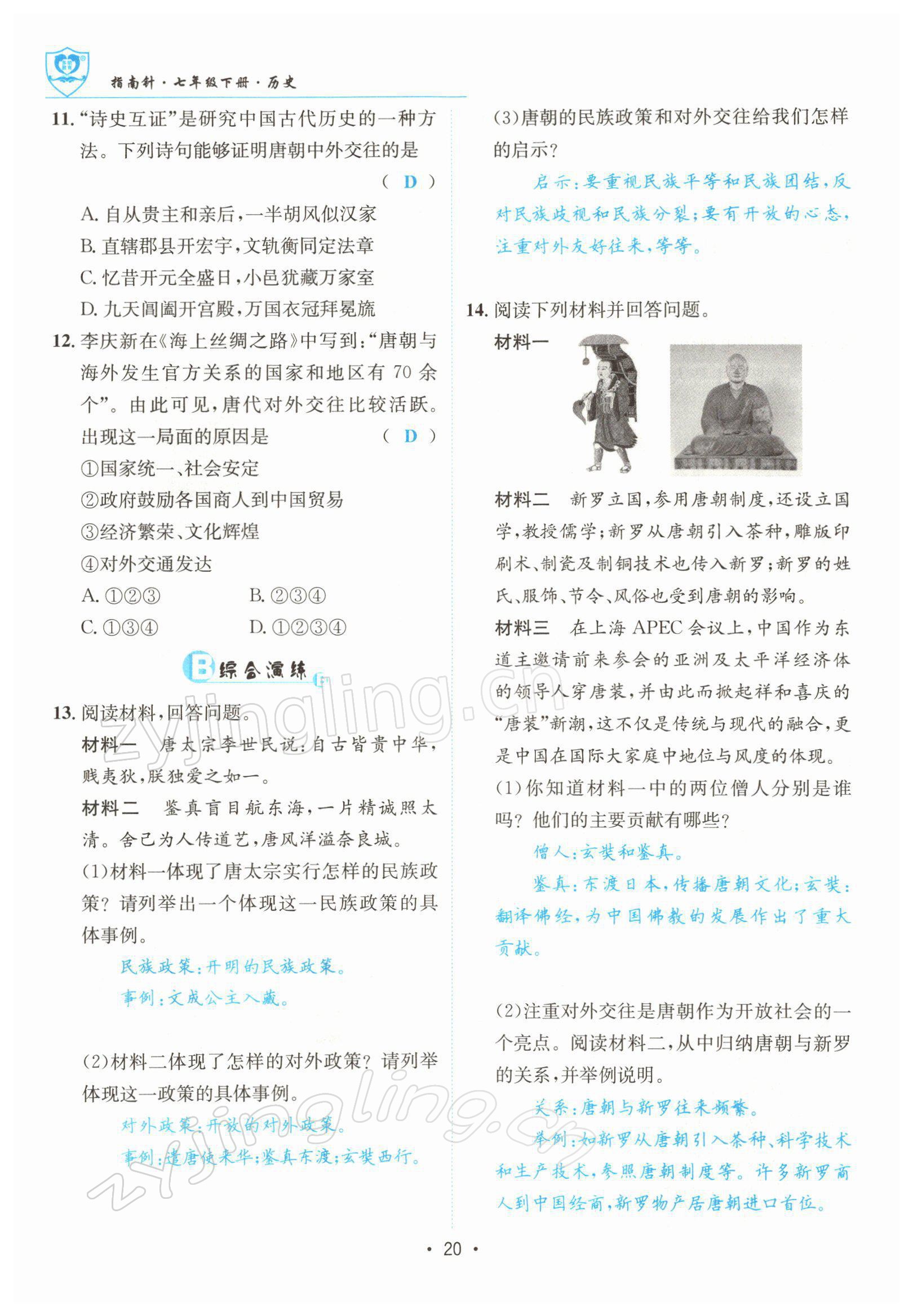 注:目前有些书本章节名称可能整理的还不是很完善,但都是按照顺序排列的,请同学们按照顺序仔细查找。练习册 2022年指南针导学探究七年级历史下册人教版 答案主要是用来给同学们做完题方便对答案用的,请勿直接抄袭。