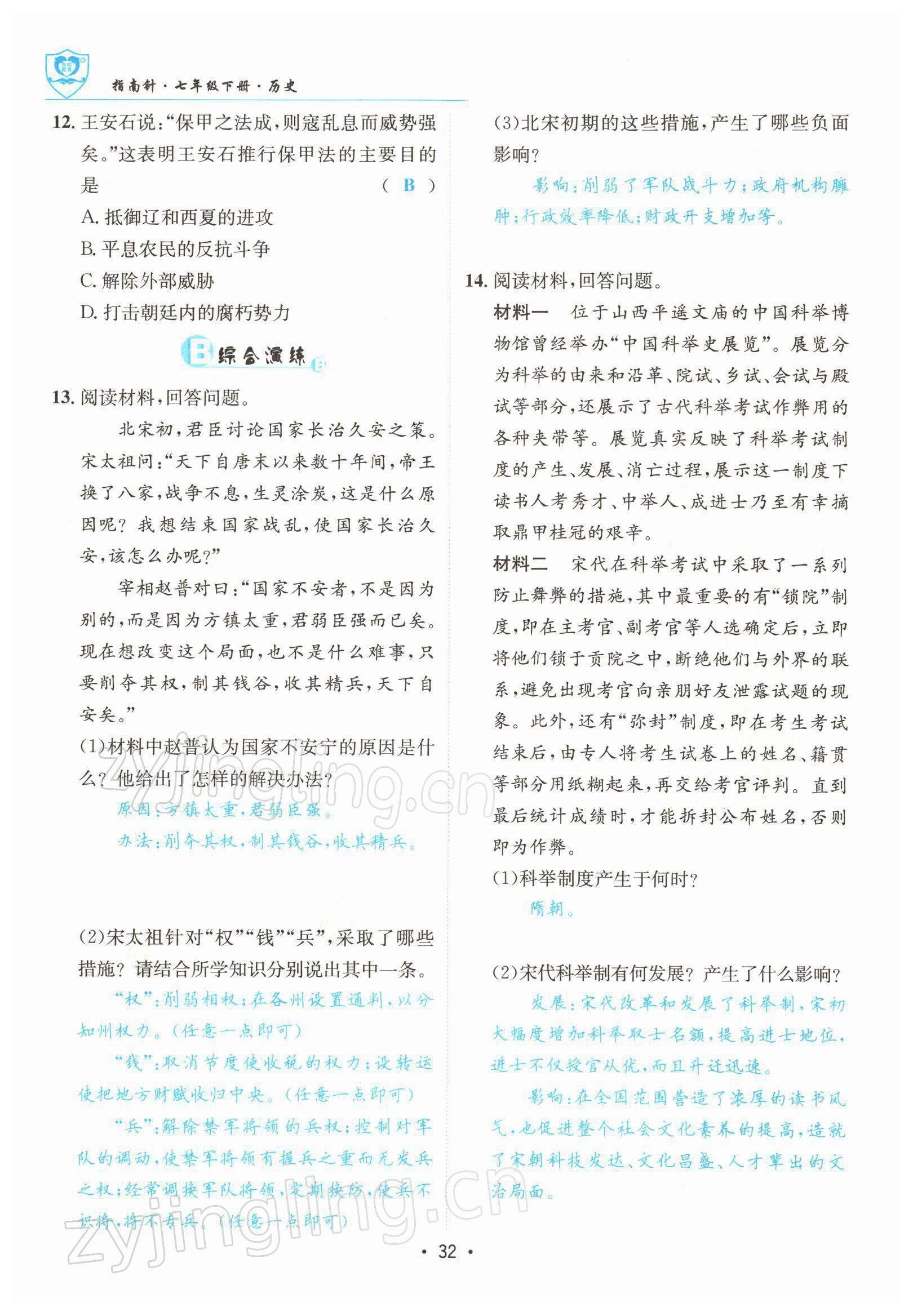 注:目前有些书本章节名称可能整理的还不是很完善,但都是按照顺序排列的,请同学们按照顺序仔细查找。练习册 2022年指南针导学探究七年级历史下册人教版 答案主要是用来给同学们做完题方便对答案用的,请勿直接抄袭。