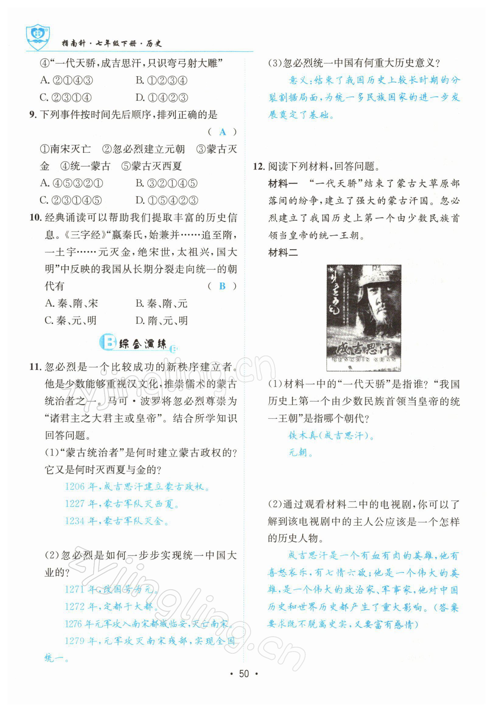 注:目前有些书本章节名称可能整理的还不是很完善,但都是按照顺序排列的,请同学们按照顺序仔细查找。练习册 2022年指南针导学探究七年级历史下册人教版 答案主要是用来给同学们做完题方便对答案用的,请勿直接抄袭。