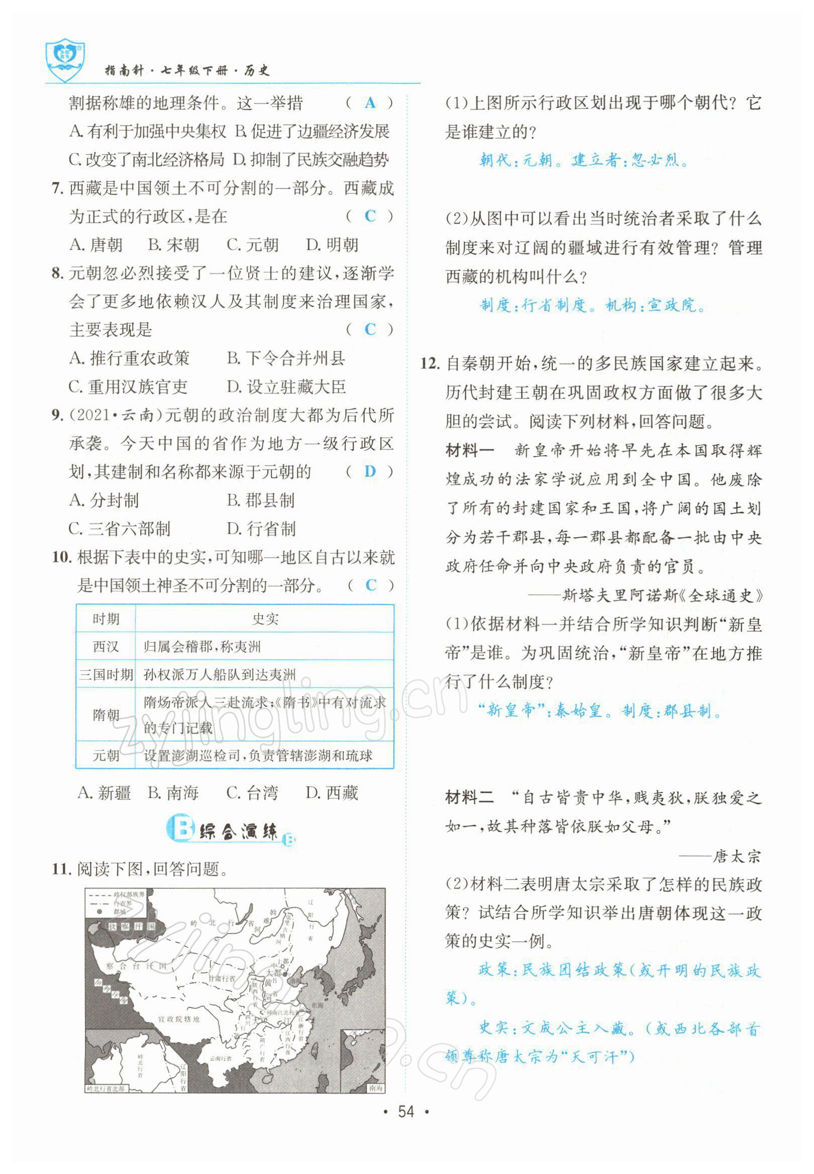 注:目前有些书本章节名称可能整理的还不是很完善,但都是按照顺序排列的,请同学们按照顺序仔细查找。练习册 2022年指南针导学探究七年级历史下册人教版 答案主要是用来给同学们做完题方便对答案用的,请勿直接抄袭。