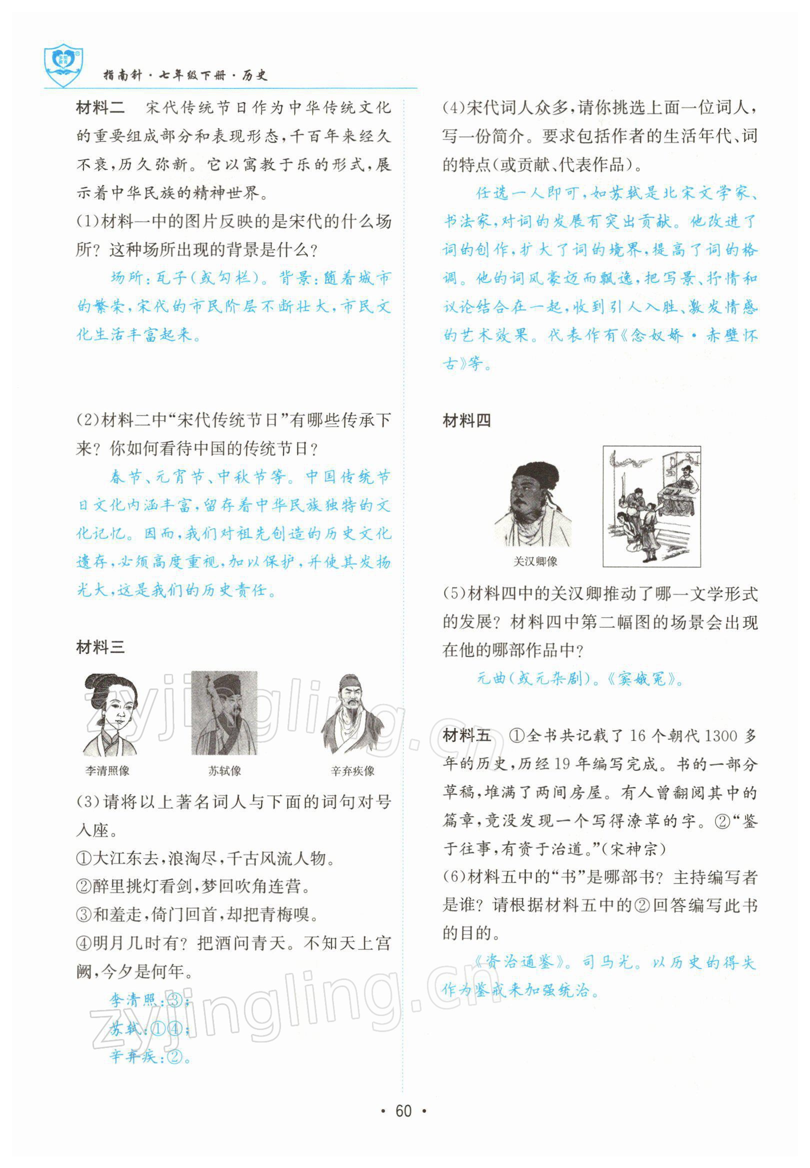 注:目前有些书本章节名称可能整理的还不是很完善,但都是按照顺序排列的,请同学们按照顺序仔细查找。练习册 2022年指南针导学探究七年级历史下册人教版 答案主要是用来给同学们做完题方便对答案用的,请勿直接抄袭。