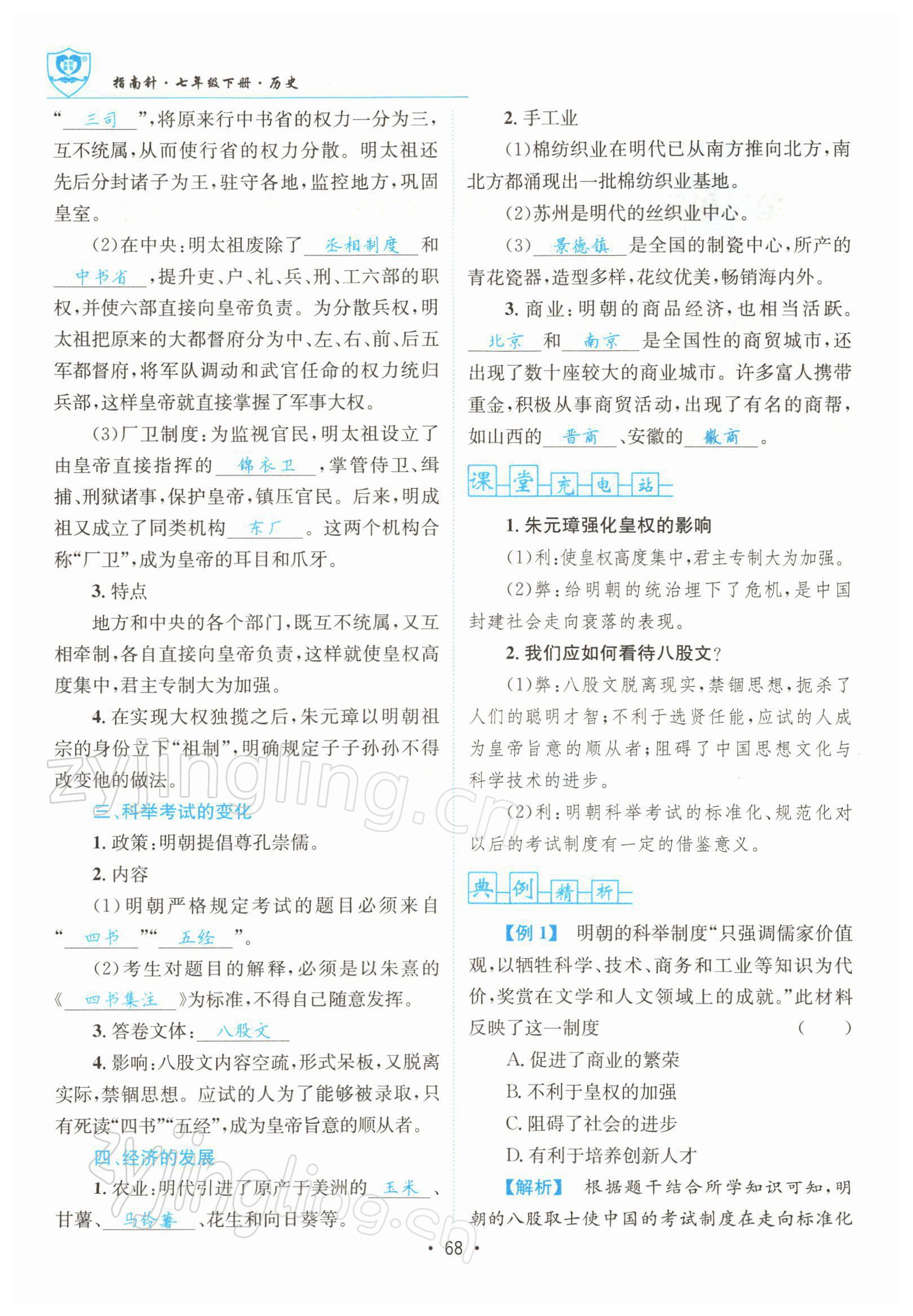 注:目前有些书本章节名称可能整理的还不是很完善,但都是按照顺序排列的,请同学们按照顺序仔细查找。练习册 2022年指南针导学探究七年级历史下册人教版 答案主要是用来给同学们做完题方便对答案用的,请勿直接抄袭。