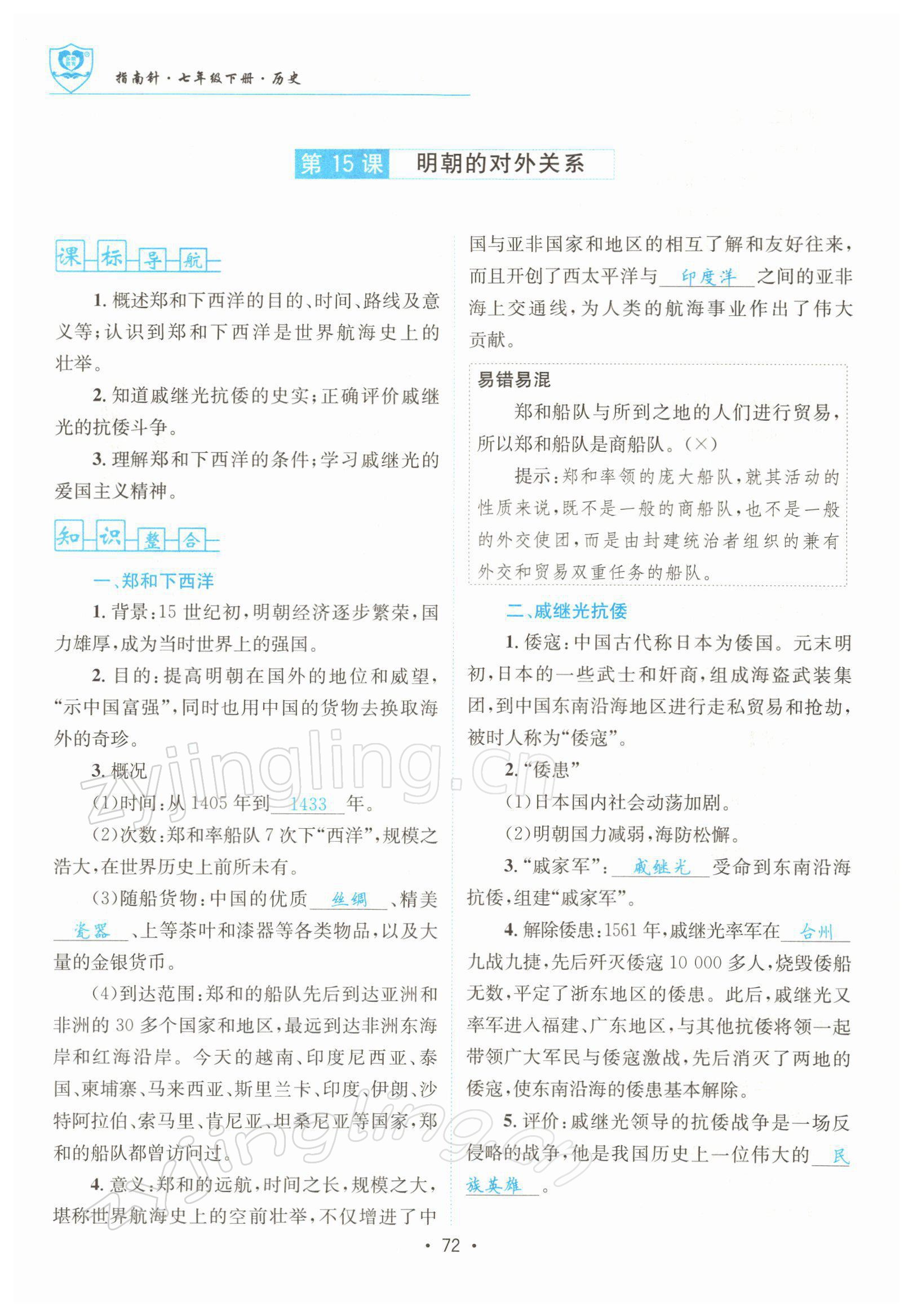 注:目前有些书本章节名称可能整理的还不是很完善,但都是按照顺序排列的,请同学们按照顺序仔细查找。练习册 2022年指南针导学探究七年级历史下册人教版 答案主要是用来给同学们做完题方便对答案用的,请勿直接抄袭。