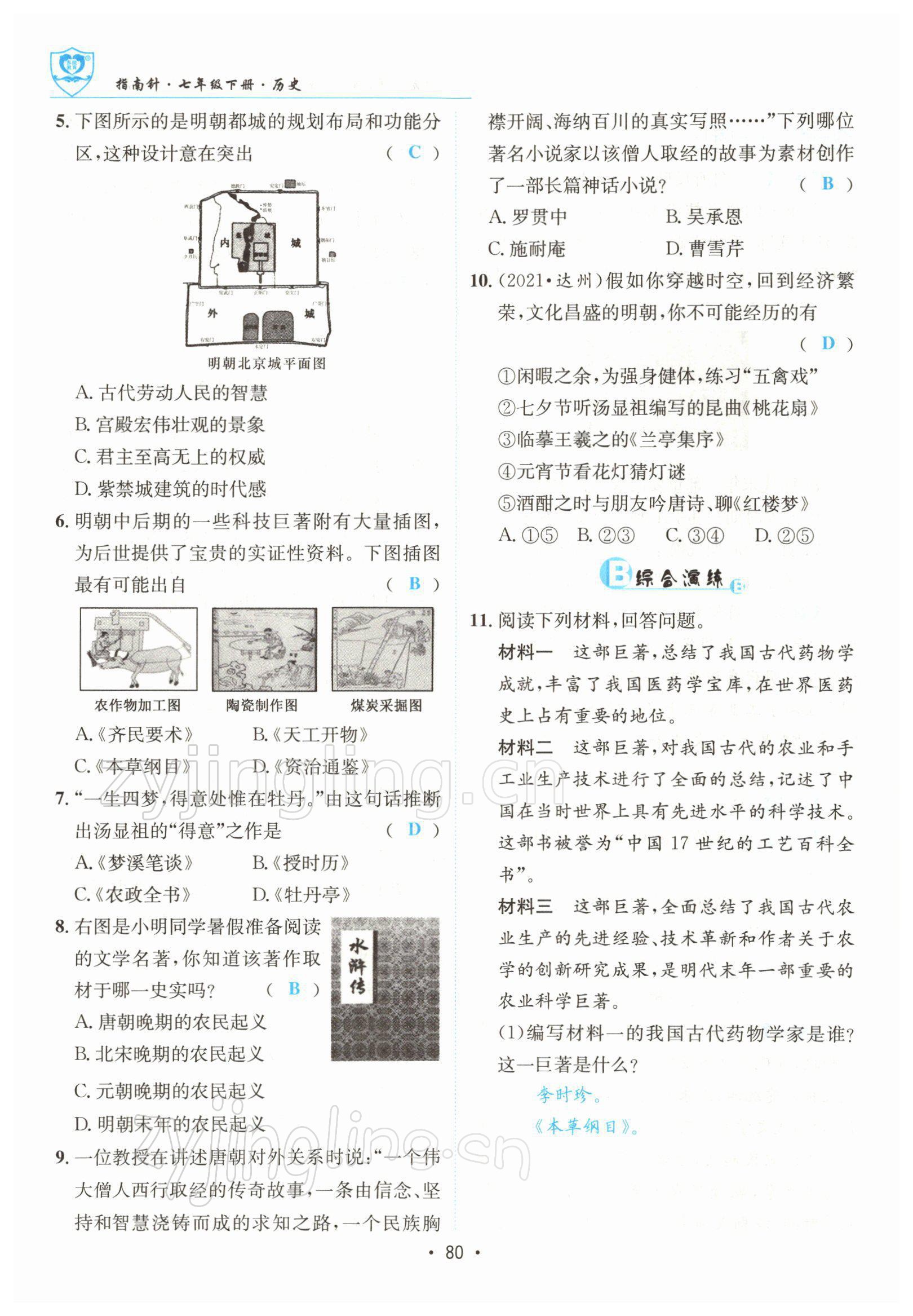 注:目前有些书本章节名称可能整理的还不是很完善,但都是按照顺序排列的,请同学们按照顺序仔细查找。练习册 2022年指南针导学探究七年级历史下册人教版 答案主要是用来给同学们做完题方便对答案用的,请勿直接抄袭。