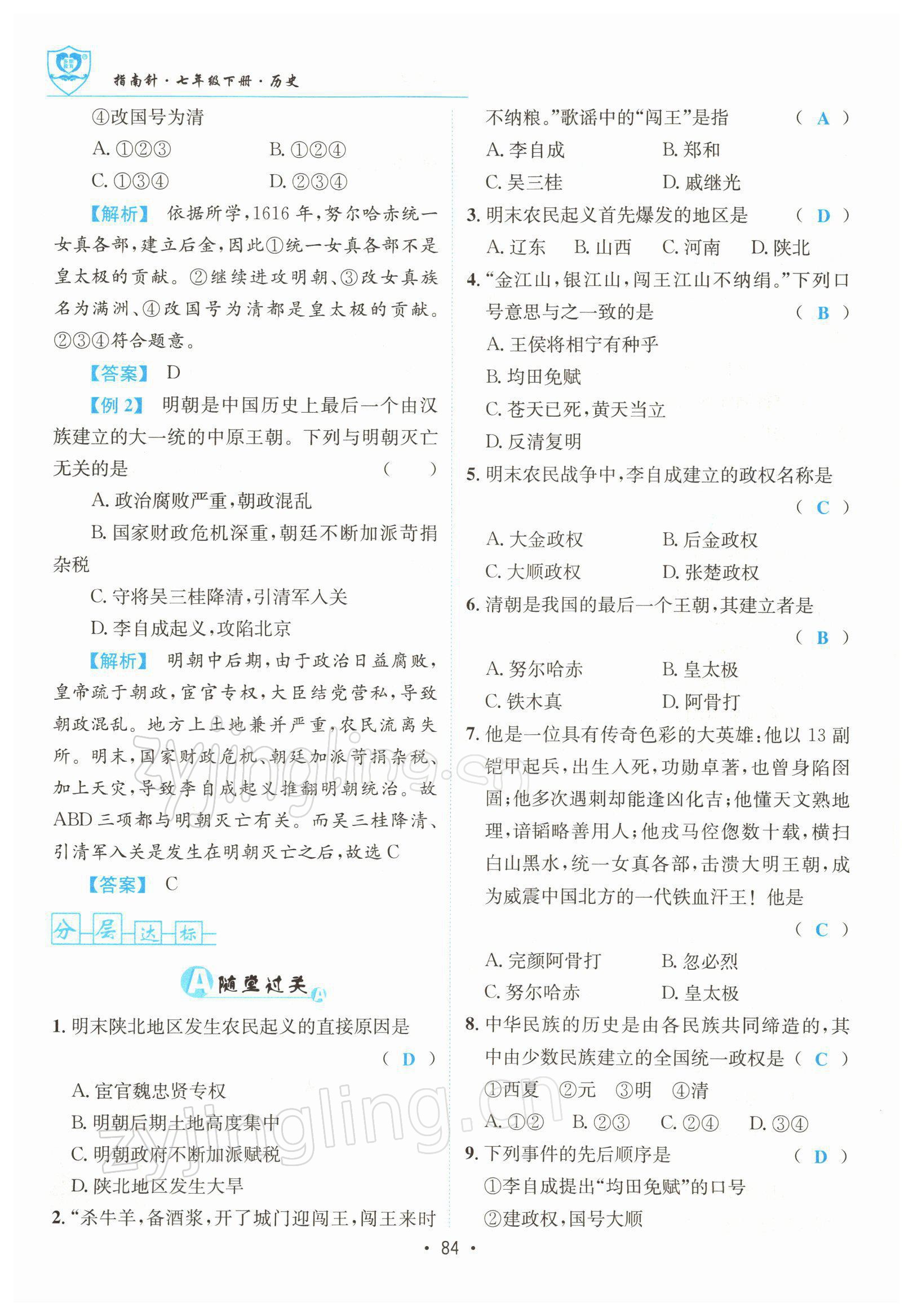 注:目前有些书本章节名称可能整理的还不是很完善,但都是按照顺序排列的,请同学们按照顺序仔细查找。练习册 2022年指南针导学探究七年级历史下册人教版 答案主要是用来给同学们做完题方便对答案用的,请勿直接抄袭。