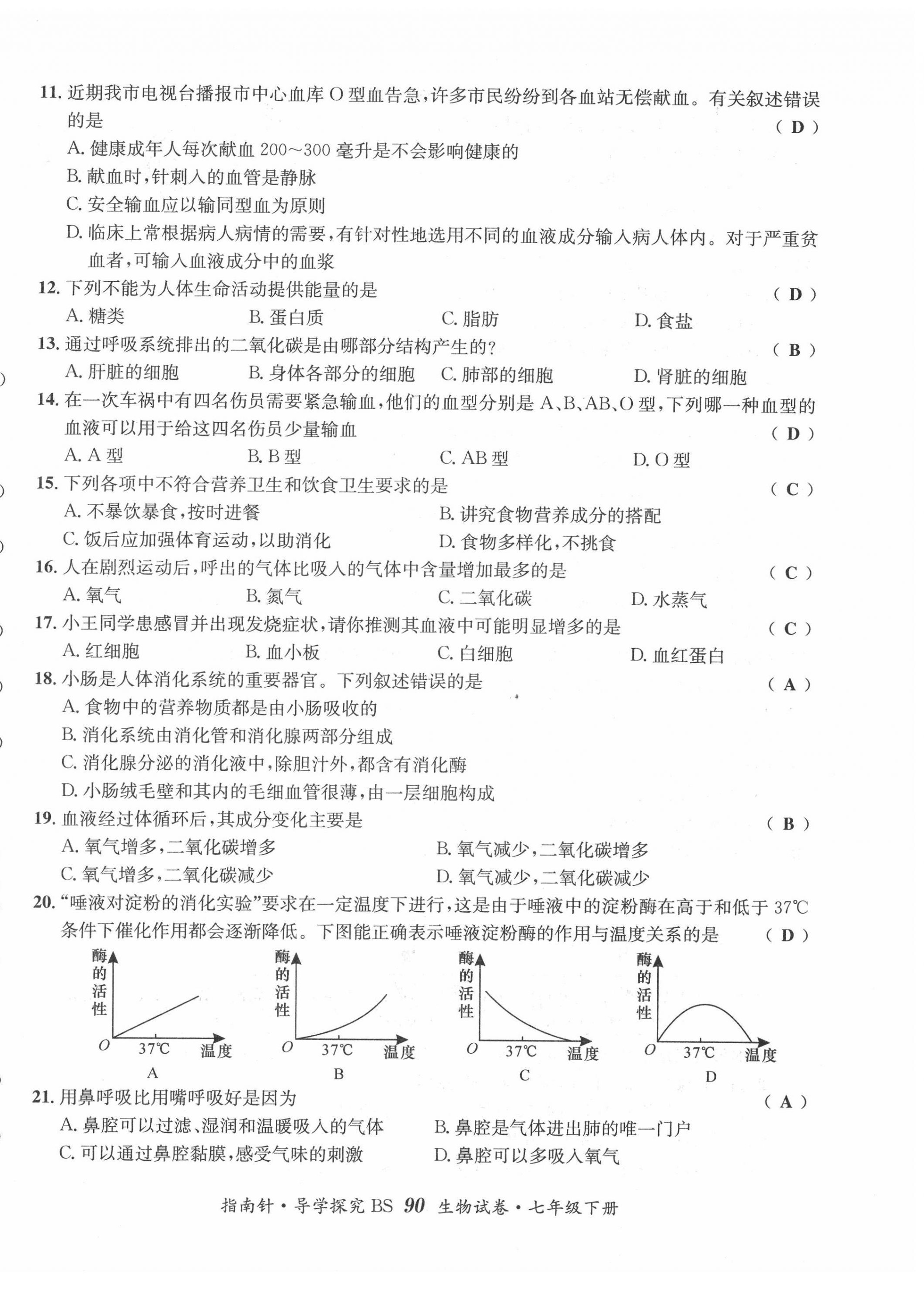 注:目前有些书本章节名称可能整理的还不是很完善,但都是按照顺序排列的,请同学们按照顺序仔细查找。练习册 2022年指南针导学探究七年级生物下册北师大版 答案主要是用来给同学们做完题方便对答案用的,请勿直接抄袭。