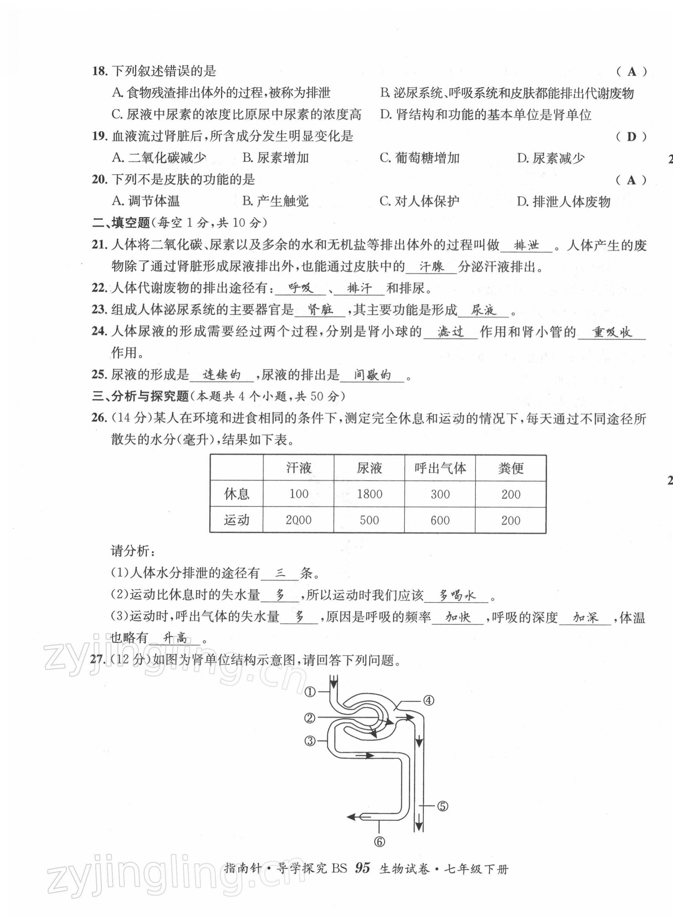 注:目前有些书本章节名称可能整理的还不是很完善,但都是按照顺序排列的,请同学们按照顺序仔细查找。练习册 2022年指南针导学探究七年级生物下册北师大版 答案主要是用来给同学们做完题方便对答案用的,请勿直接抄袭。