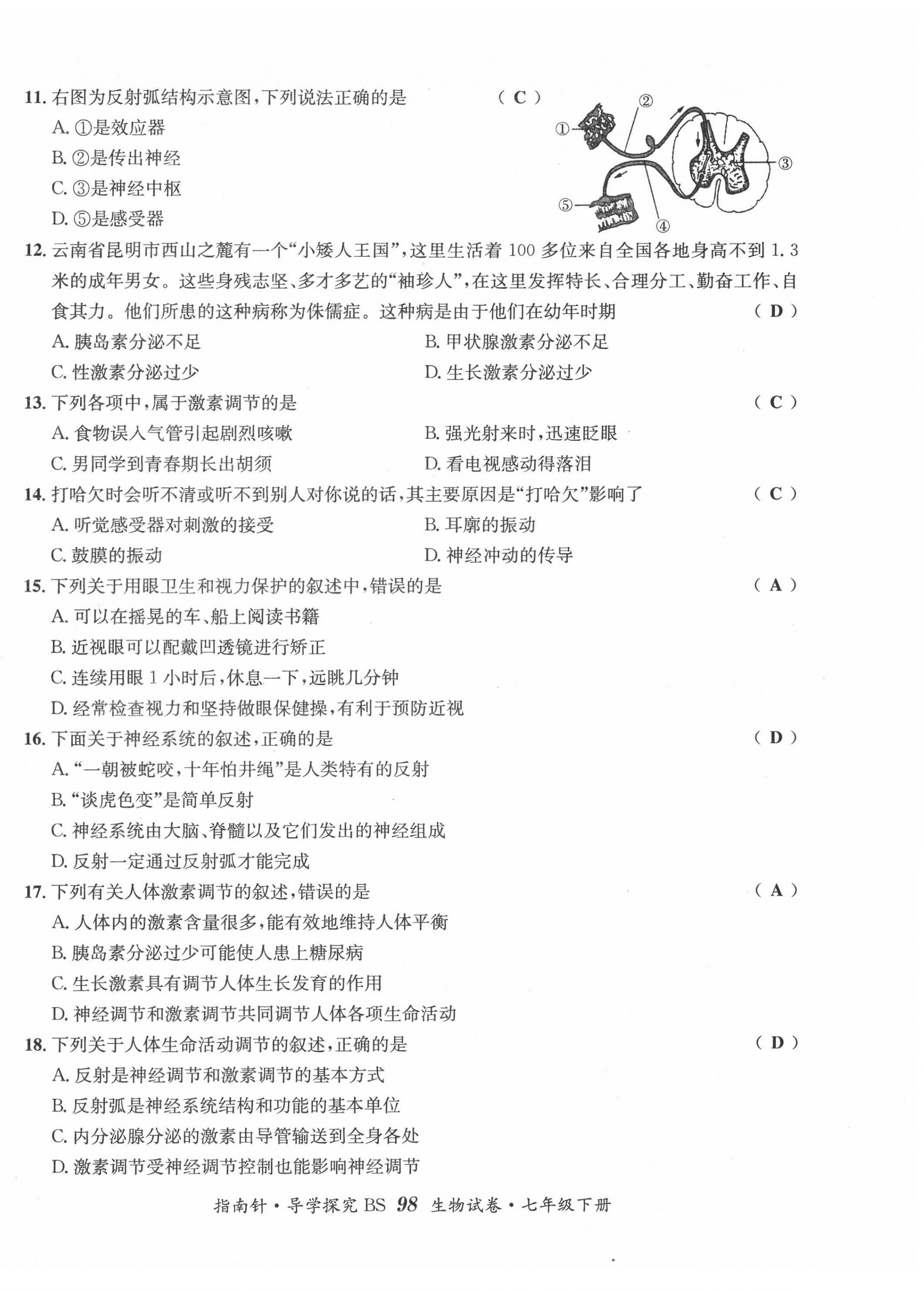 注:目前有些书本章节名称可能整理的还不是很完善,但都是按照顺序排列的,请同学们按照顺序仔细查找。练习册 2022年指南针导学探究七年级生物下册北师大版 答案主要是用来给同学们做完题方便对答案用的,请勿直接抄袭。