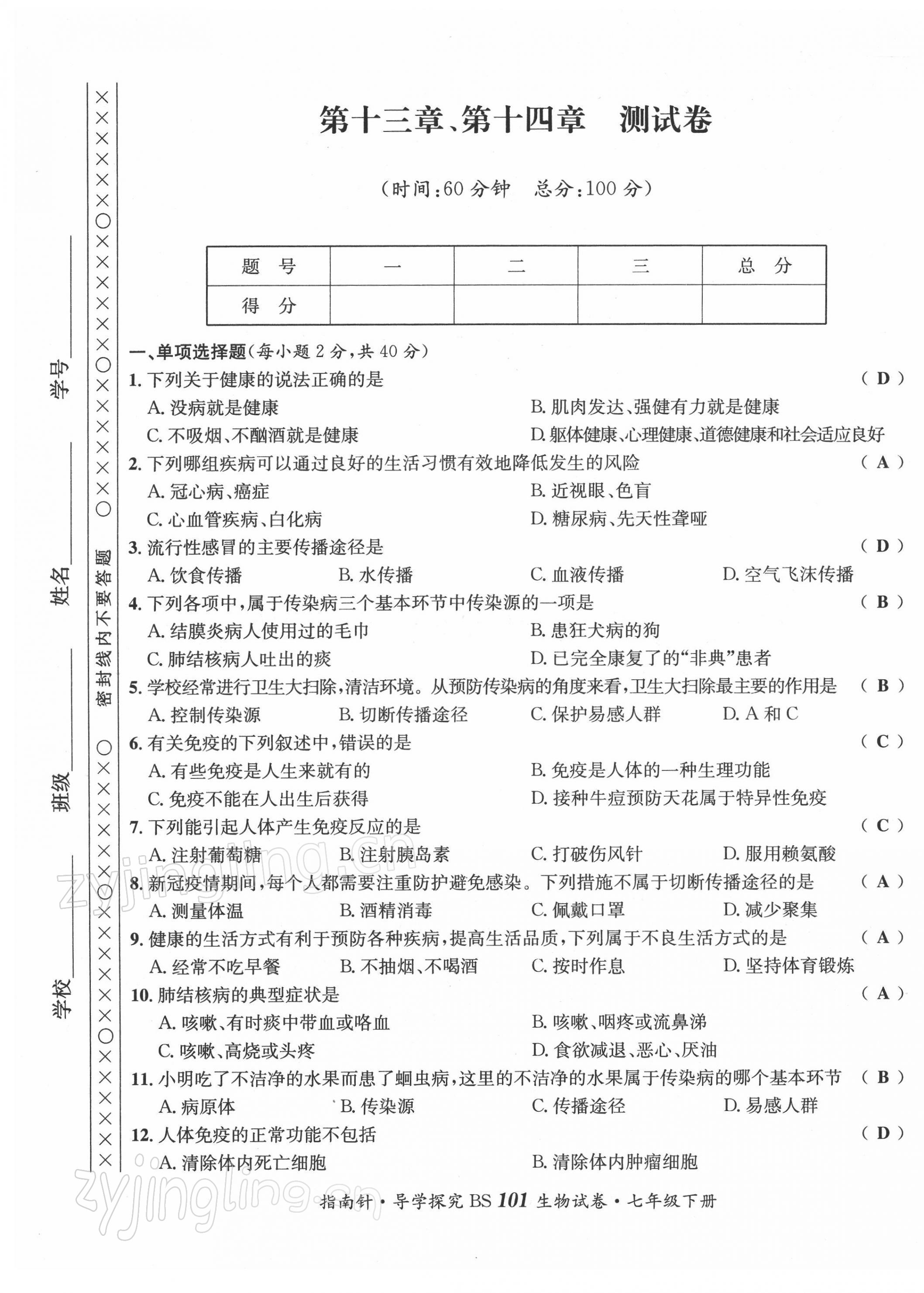 注:目前有些书本章节名称可能整理的还不是很完善,但都是按照顺序排列的,请同学们按照顺序仔细查找。练习册 2022年指南针导学探究七年级生物下册北师大版 答案主要是用来给同学们做完题方便对答案用的,请勿直接抄袭。
