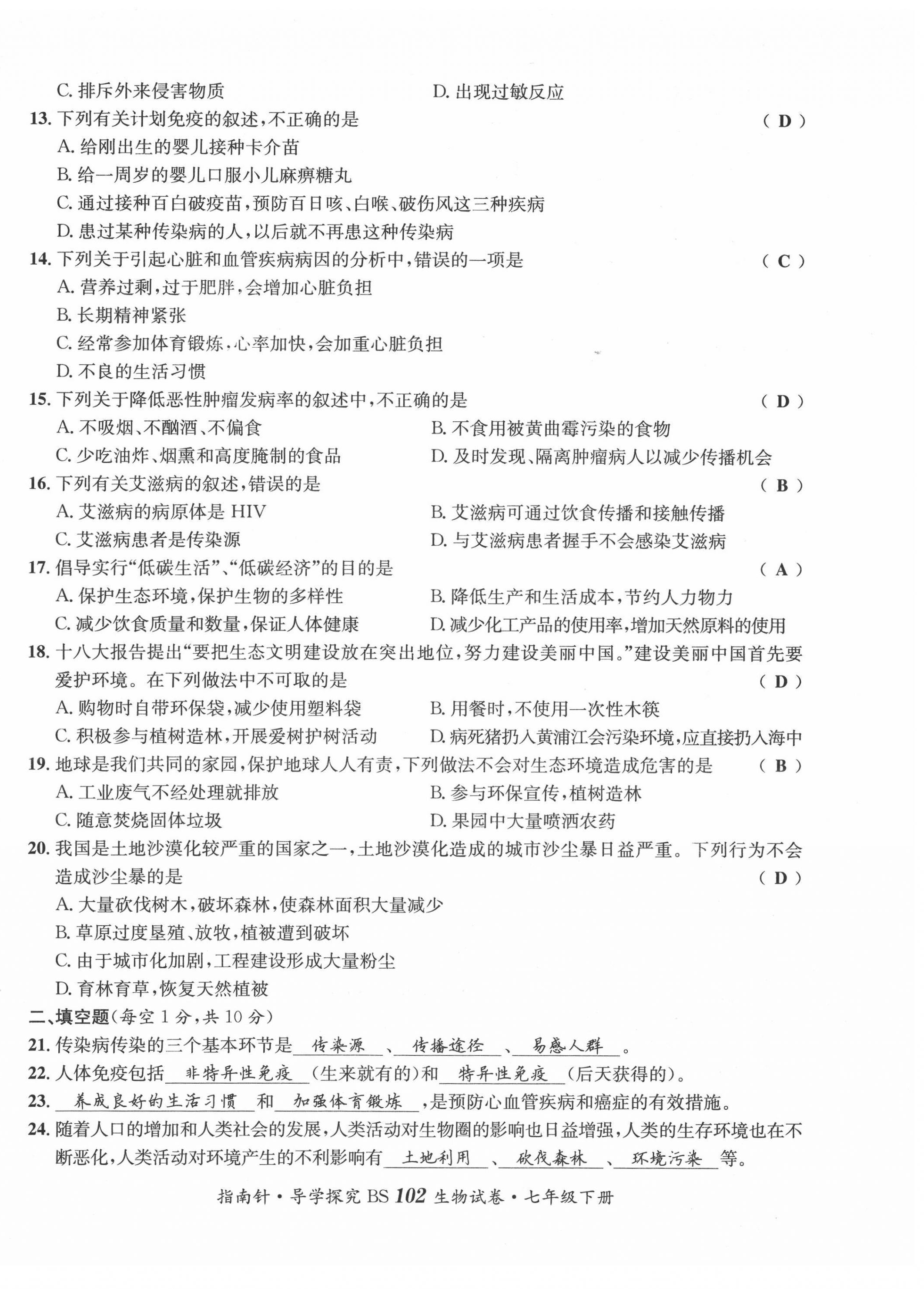注:目前有些书本章节名称可能整理的还不是很完善,但都是按照顺序排列的,请同学们按照顺序仔细查找。练习册 2022年指南针导学探究七年级生物下册北师大版 答案主要是用来给同学们做完题方便对答案用的,请勿直接抄袭。
