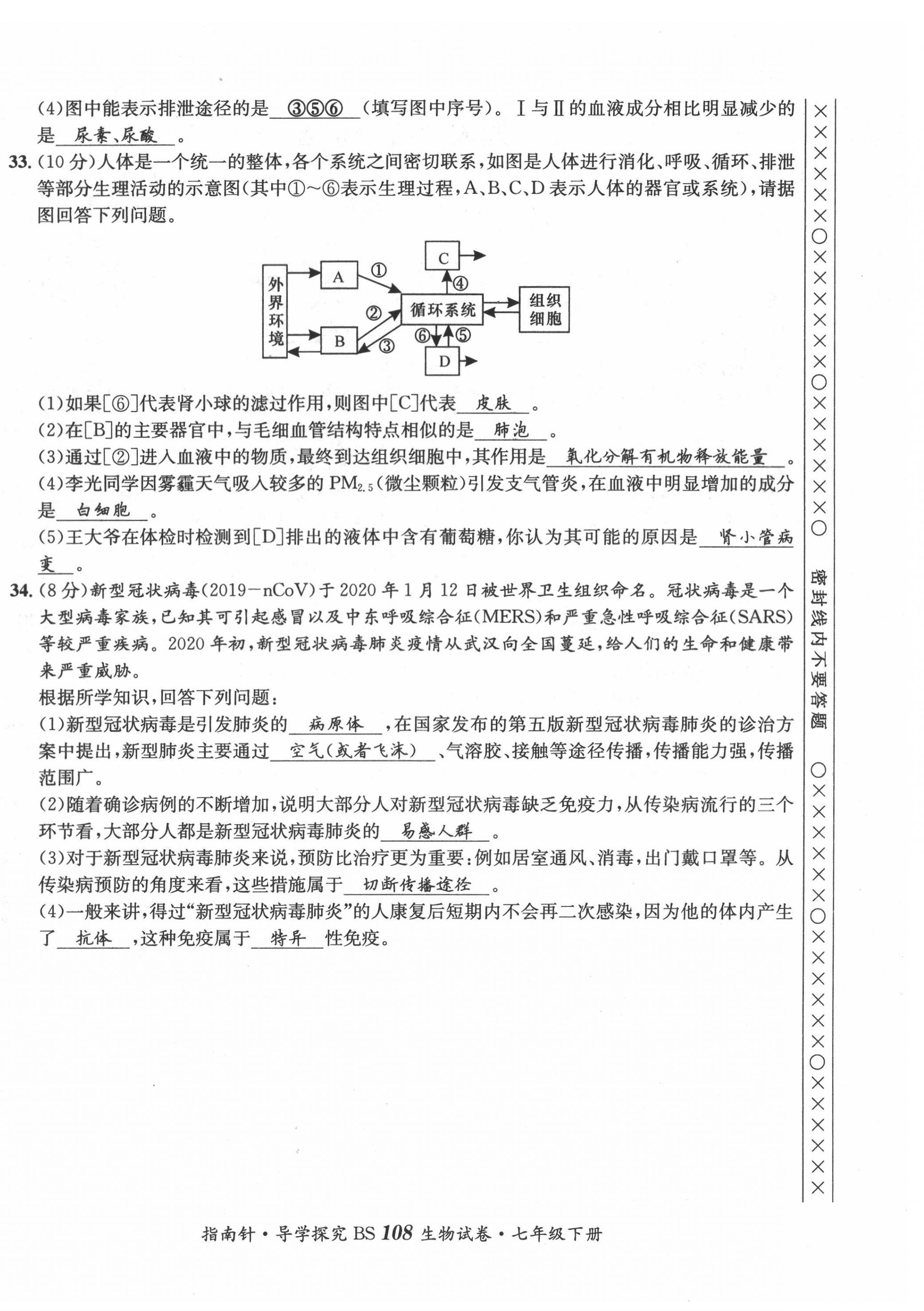 注:目前有些书本章节名称可能整理的还不是很完善,但都是按照顺序排列的,请同学们按照顺序仔细查找。练习册 2022年指南针导学探究七年级生物下册北师大版 答案主要是用来给同学们做完题方便对答案用的,请勿直接抄袭。