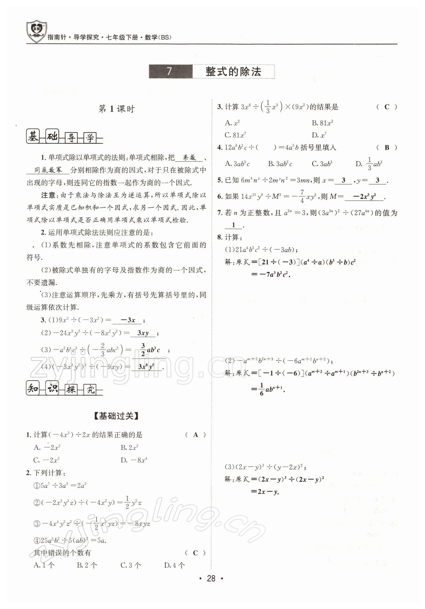 注:目前有些书本章节名称可能整理的还不是很完善,但都是按照顺序排列的,请同学们按照顺序仔细查找。练习册 2022年指南针导学探究七年级数学下册北师大版 答案主要是用来给同学们做完题方便对答案用的,请勿直接抄袭。