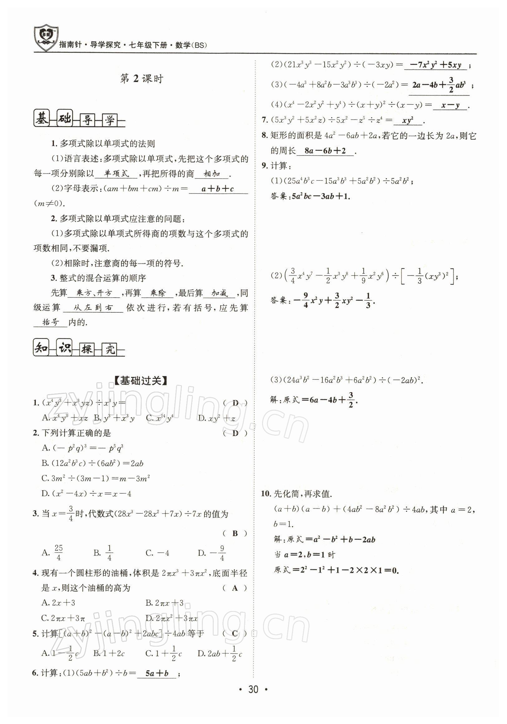 注:目前有些书本章节名称可能整理的还不是很完善,但都是按照顺序排列的,请同学们按照顺序仔细查找。练习册 2022年指南针导学探究七年级数学下册北师大版 答案主要是用来给同学们做完题方便对答案用的,请勿直接抄袭。