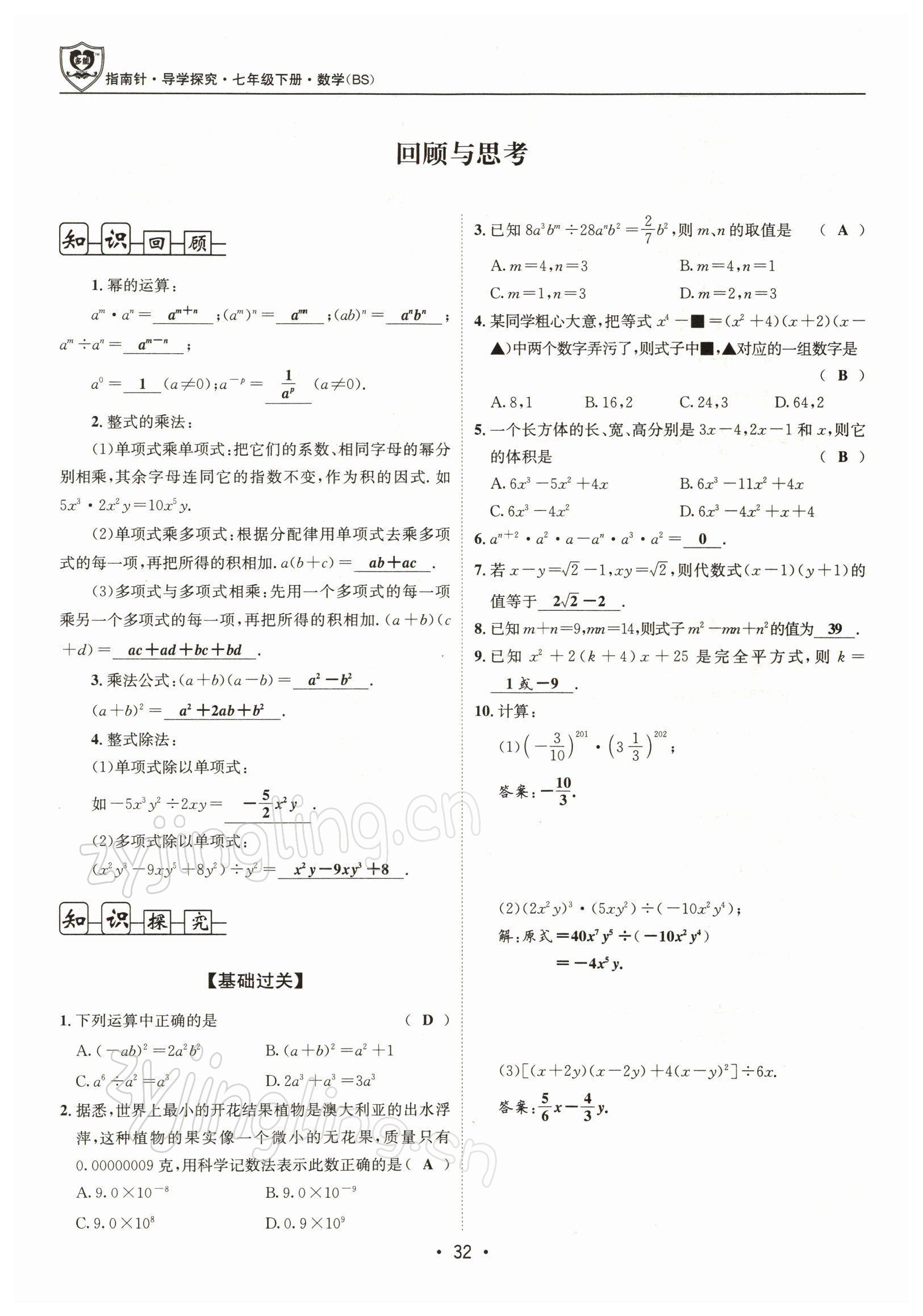 注:目前有些书本章节名称可能整理的还不是很完善,但都是按照顺序排列的,请同学们按照顺序仔细查找。练习册 2022年指南针导学探究七年级数学下册北师大版 答案主要是用来给同学们做完题方便对答案用的,请勿直接抄袭。