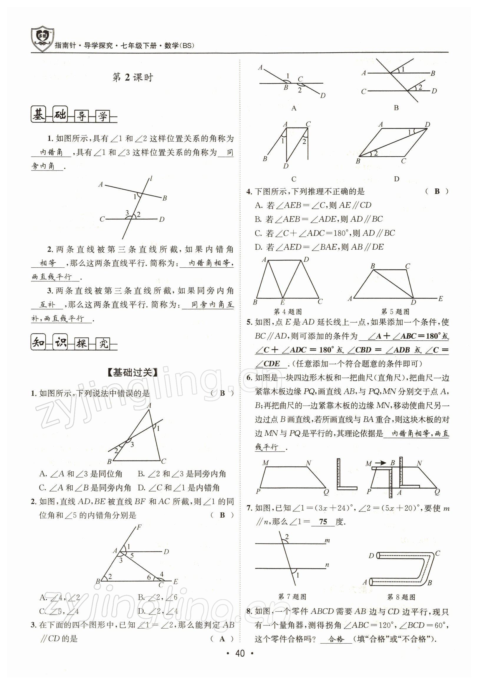 注:目前有些书本章节名称可能整理的还不是很完善,但都是按照顺序排列的,请同学们按照顺序仔细查找。练习册 2022年指南针导学探究七年级数学下册北师大版 答案主要是用来给同学们做完题方便对答案用的,请勿直接抄袭。