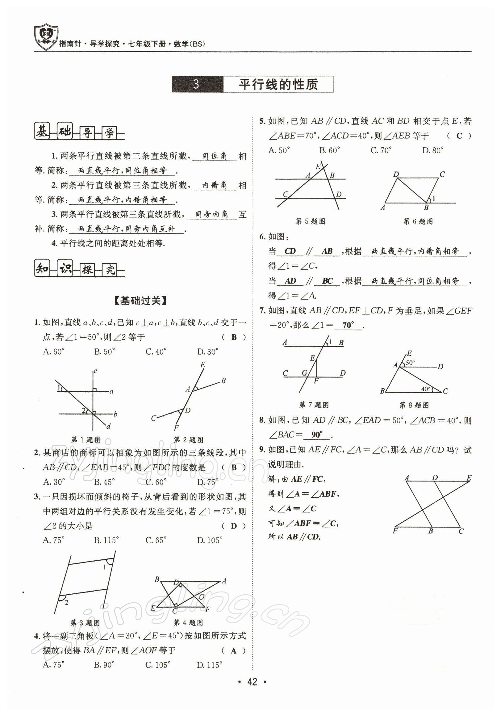 注:目前有些书本章节名称可能整理的还不是很完善,但都是按照顺序排列的,请同学们按照顺序仔细查找。练习册 2022年指南针导学探究七年级数学下册北师大版 答案主要是用来给同学们做完题方便对答案用的,请勿直接抄袭。