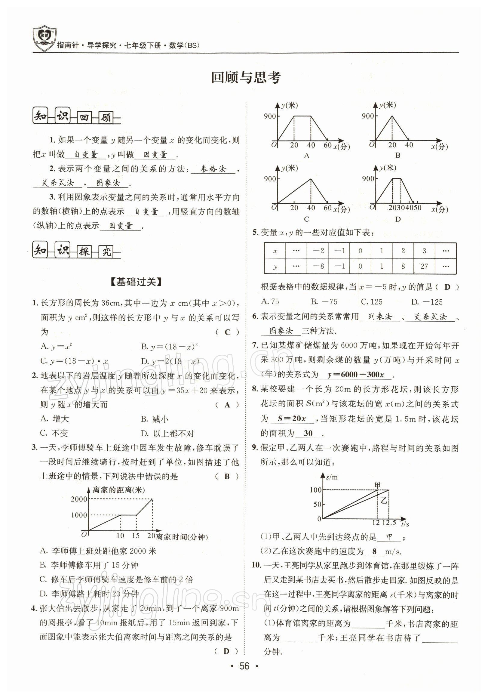 注:目前有些书本章节名称可能整理的还不是很完善,但都是按照顺序排列的,请同学们按照顺序仔细查找。练习册 2022年指南针导学探究七年级数学下册北师大版 答案主要是用来给同学们做完题方便对答案用的,请勿直接抄袭。