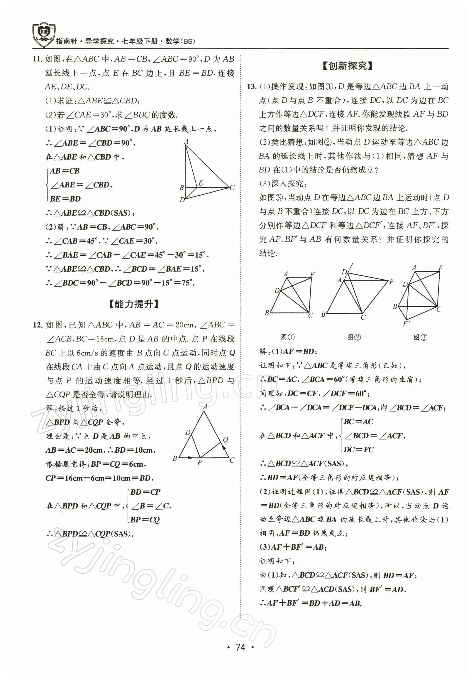 注:目前有些书本章节名称可能整理的还不是很完善,但都是按照顺序排列的,请同学们按照顺序仔细查找。练习册 2022年指南针导学探究七年级数学下册北师大版 答案主要是用来给同学们做完题方便对答案用的,请勿直接抄袭。