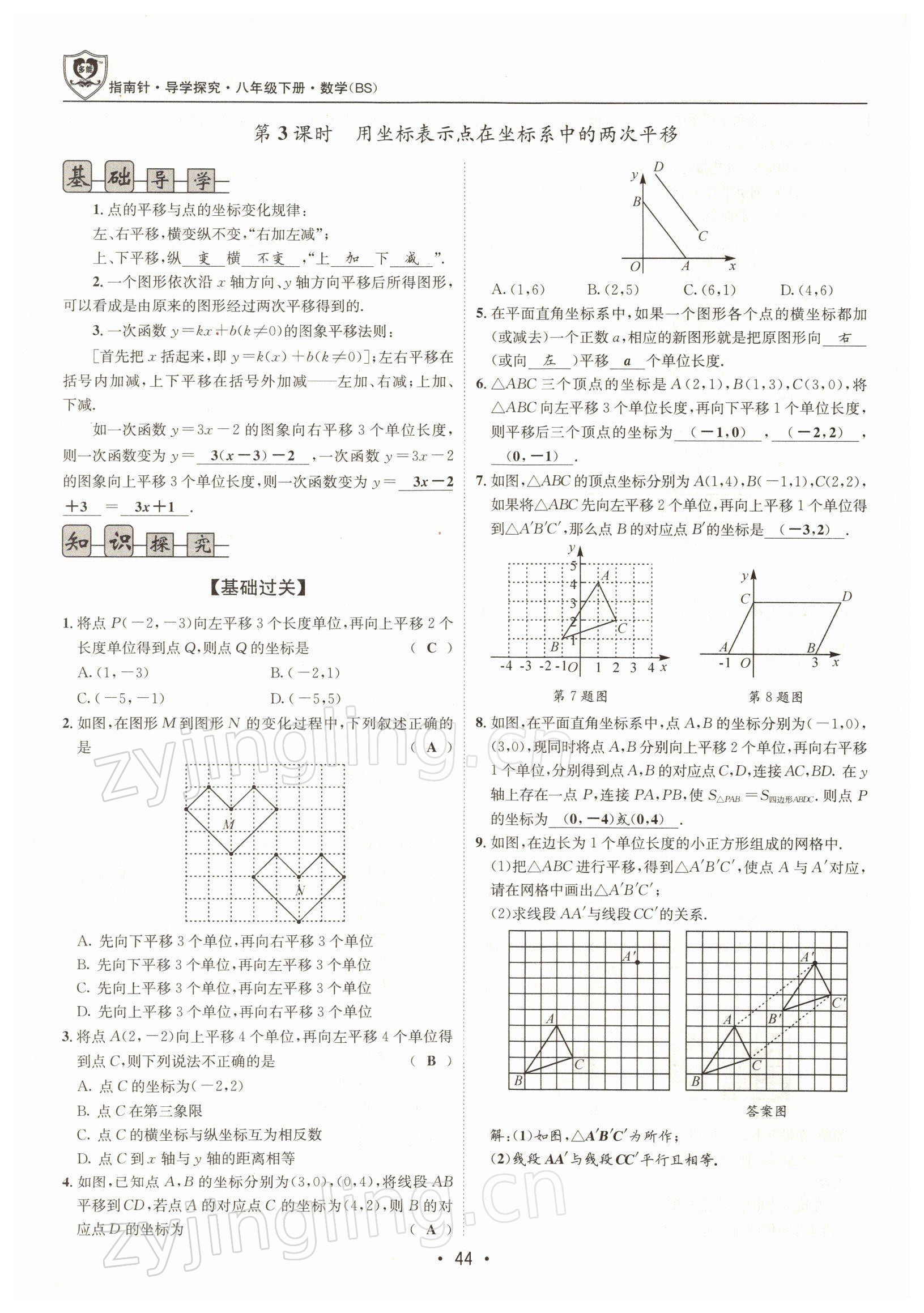 注:目前有些书本章节名称可能整理的还不是很完善,但都是按照顺序排列的,请同学们按照顺序仔细查找。练习册 2022年指南针导学探究八年级数学下册北师大版 答案主要是用来给同学们做完题方便对答案用的,请勿直接抄袭。