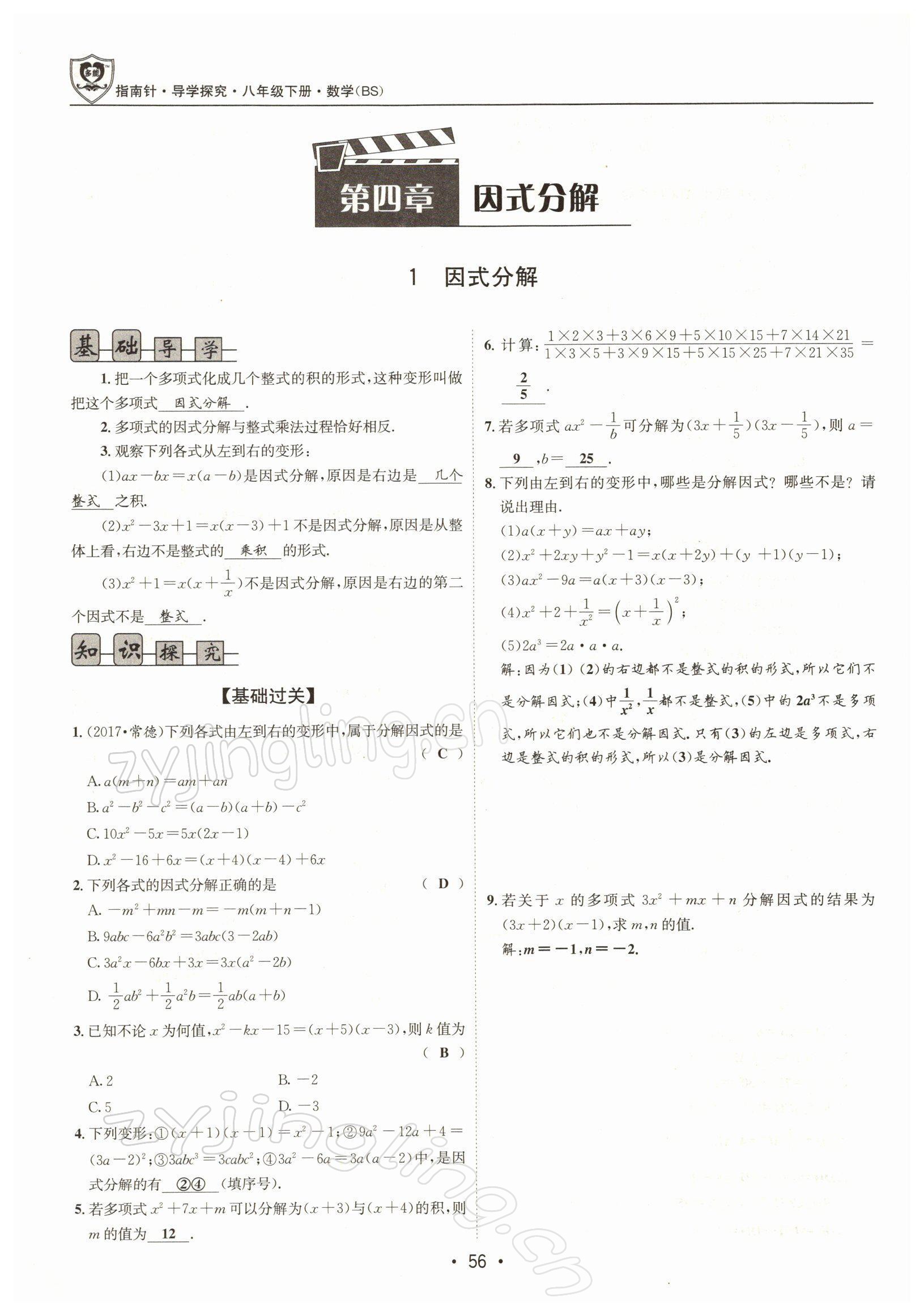 注:目前有些书本章节名称可能整理的还不是很完善,但都是按照顺序排列的,请同学们按照顺序仔细查找。练习册 2022年指南针导学探究八年级数学下册北师大版 答案主要是用来给同学们做完题方便对答案用的,请勿直接抄袭。