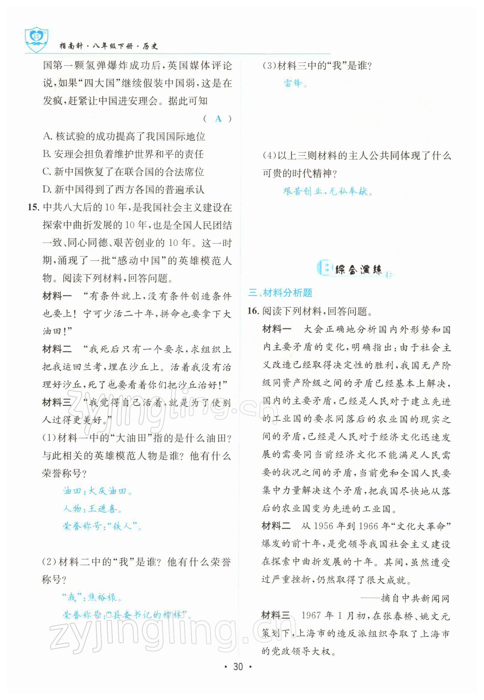注:目前有些书本章节名称可能整理的还不是很完善,但都是按照顺序排列的,请同学们按照顺序仔细查找。练习册 2022年指南针导学探究八年级历史下册人教版 答案主要是用来给同学们做完题方便对答案用的,请勿直接抄袭。