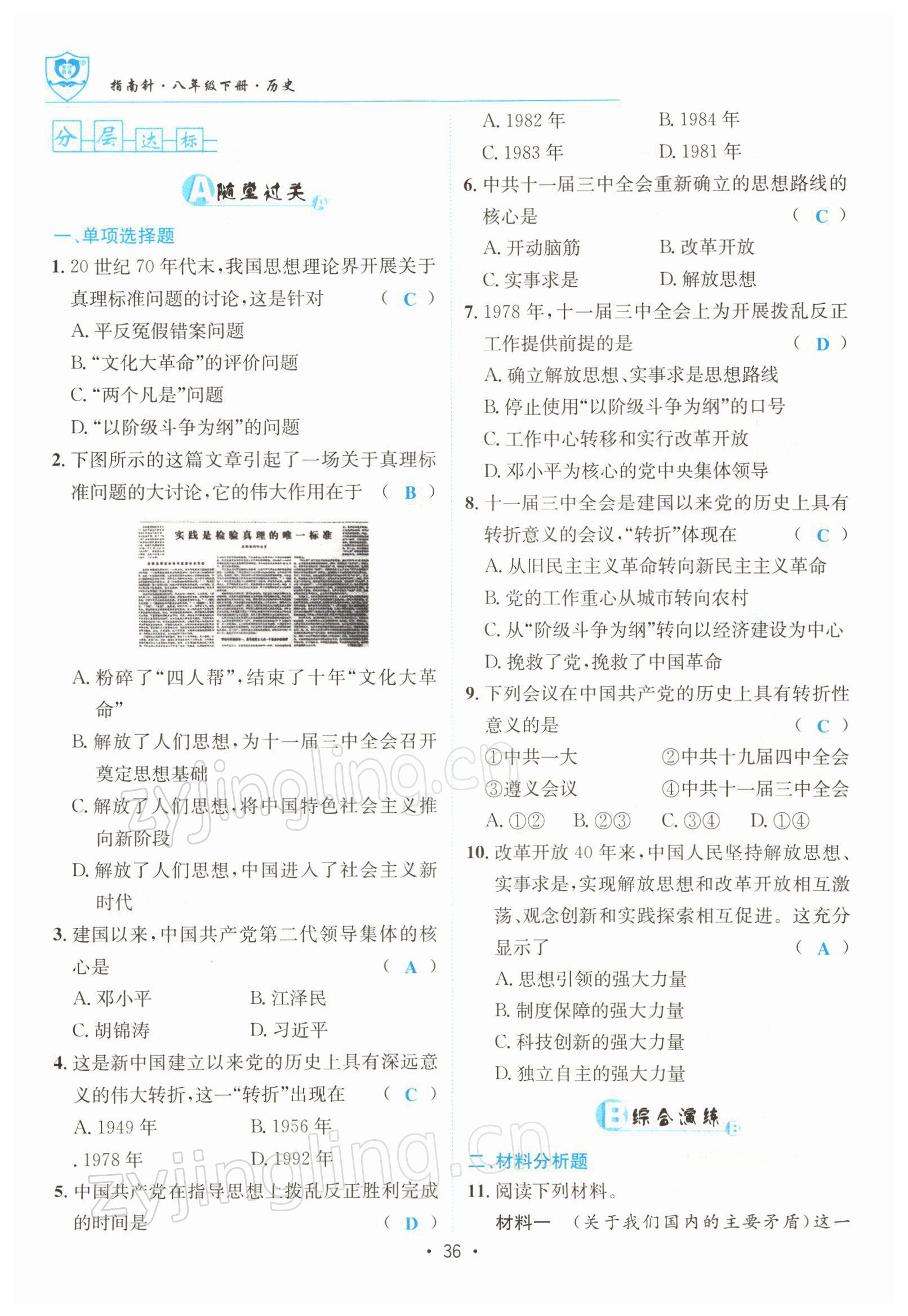 注:目前有些书本章节名称可能整理的还不是很完善,但都是按照顺序排列的,请同学们按照顺序仔细查找。练习册 2022年指南针导学探究八年级历史下册人教版 答案主要是用来给同学们做完题方便对答案用的,请勿直接抄袭。