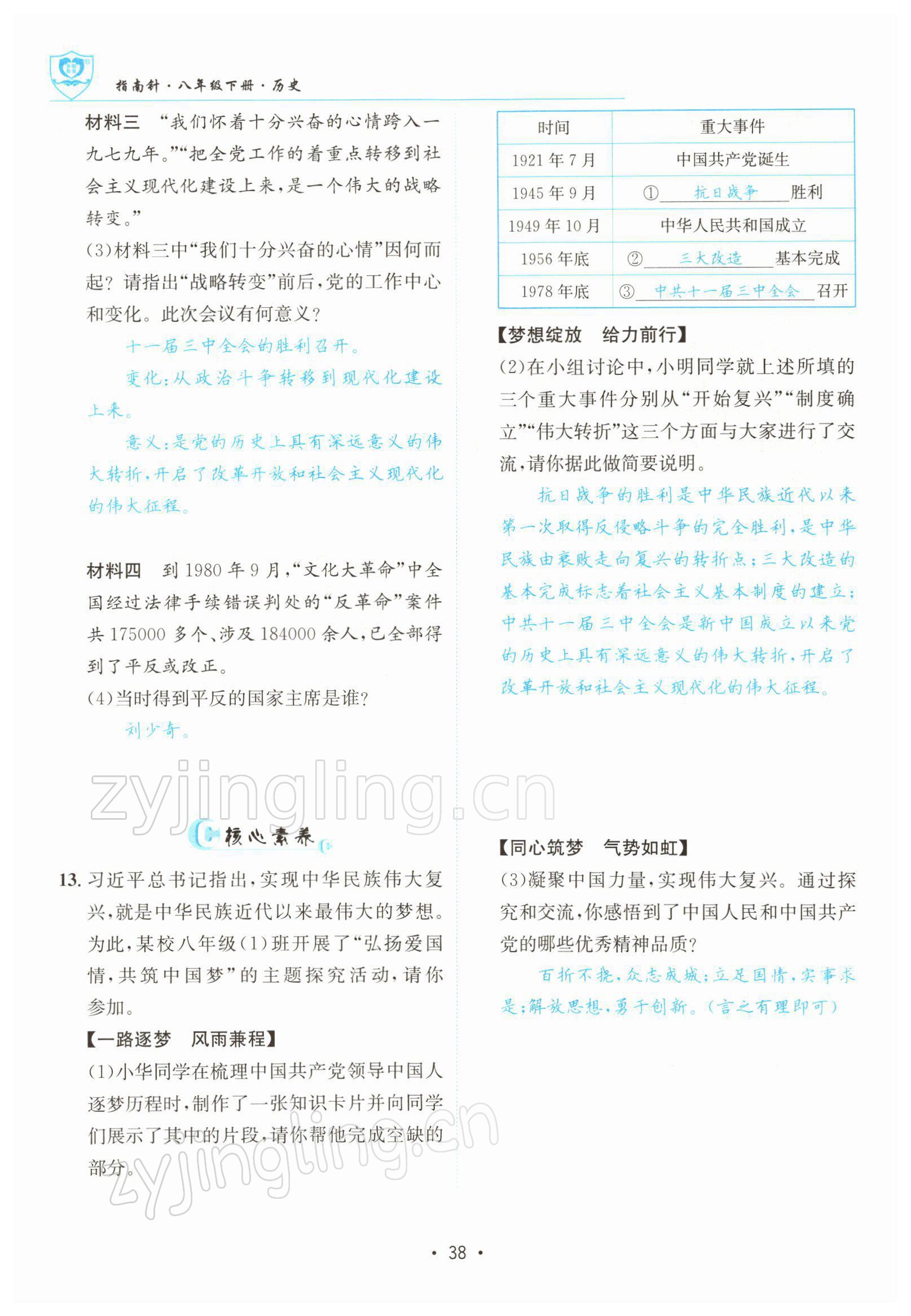 注:目前有些书本章节名称可能整理的还不是很完善,但都是按照顺序排列的,请同学们按照顺序仔细查找。练习册 2022年指南针导学探究八年级历史下册人教版 答案主要是用来给同学们做完题方便对答案用的,请勿直接抄袭。