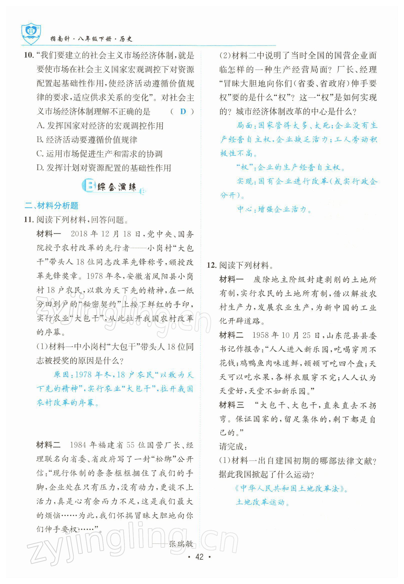 注:目前有些书本章节名称可能整理的还不是很完善,但都是按照顺序排列的,请同学们按照顺序仔细查找。练习册 2022年指南针导学探究八年级历史下册人教版 答案主要是用来给同学们做完题方便对答案用的,请勿直接抄袭。