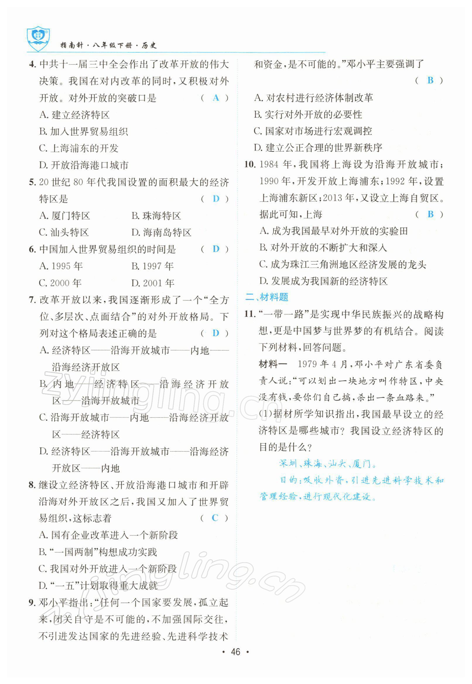 注:目前有些书本章节名称可能整理的还不是很完善,但都是按照顺序排列的,请同学们按照顺序仔细查找。练习册 2022年指南针导学探究八年级历史下册人教版 答案主要是用来给同学们做完题方便对答案用的,请勿直接抄袭。