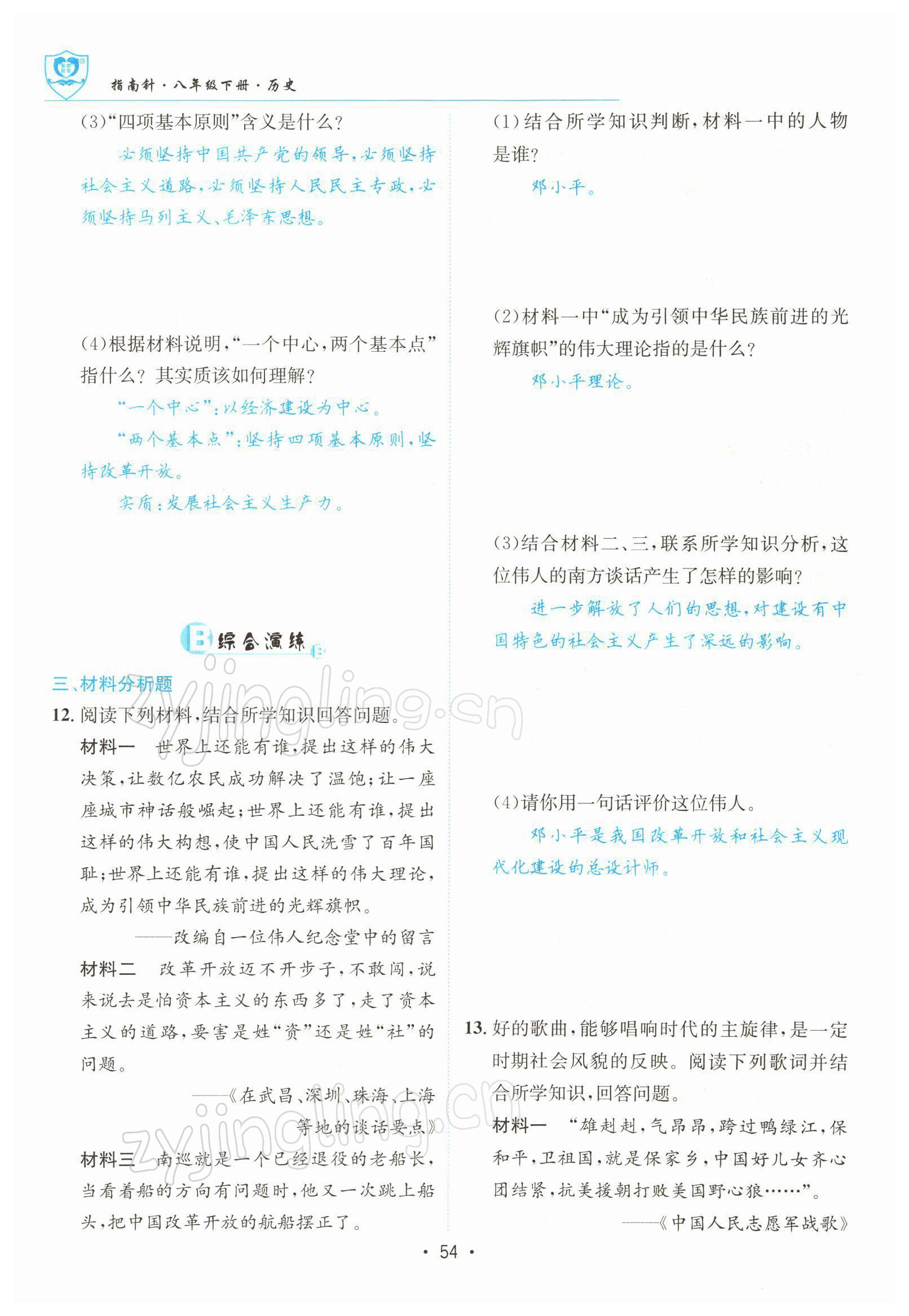 注:目前有些书本章节名称可能整理的还不是很完善,但都是按照顺序排列的,请同学们按照顺序仔细查找。练习册 2022年指南针导学探究八年级历史下册人教版 答案主要是用来给同学们做完题方便对答案用的,请勿直接抄袭。